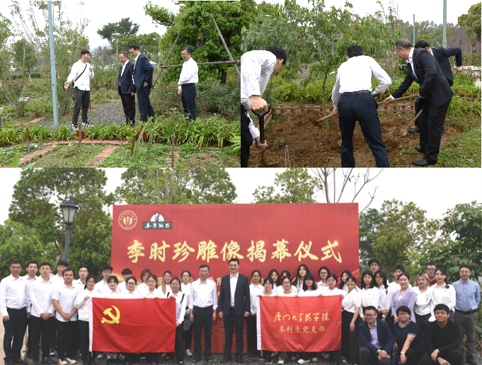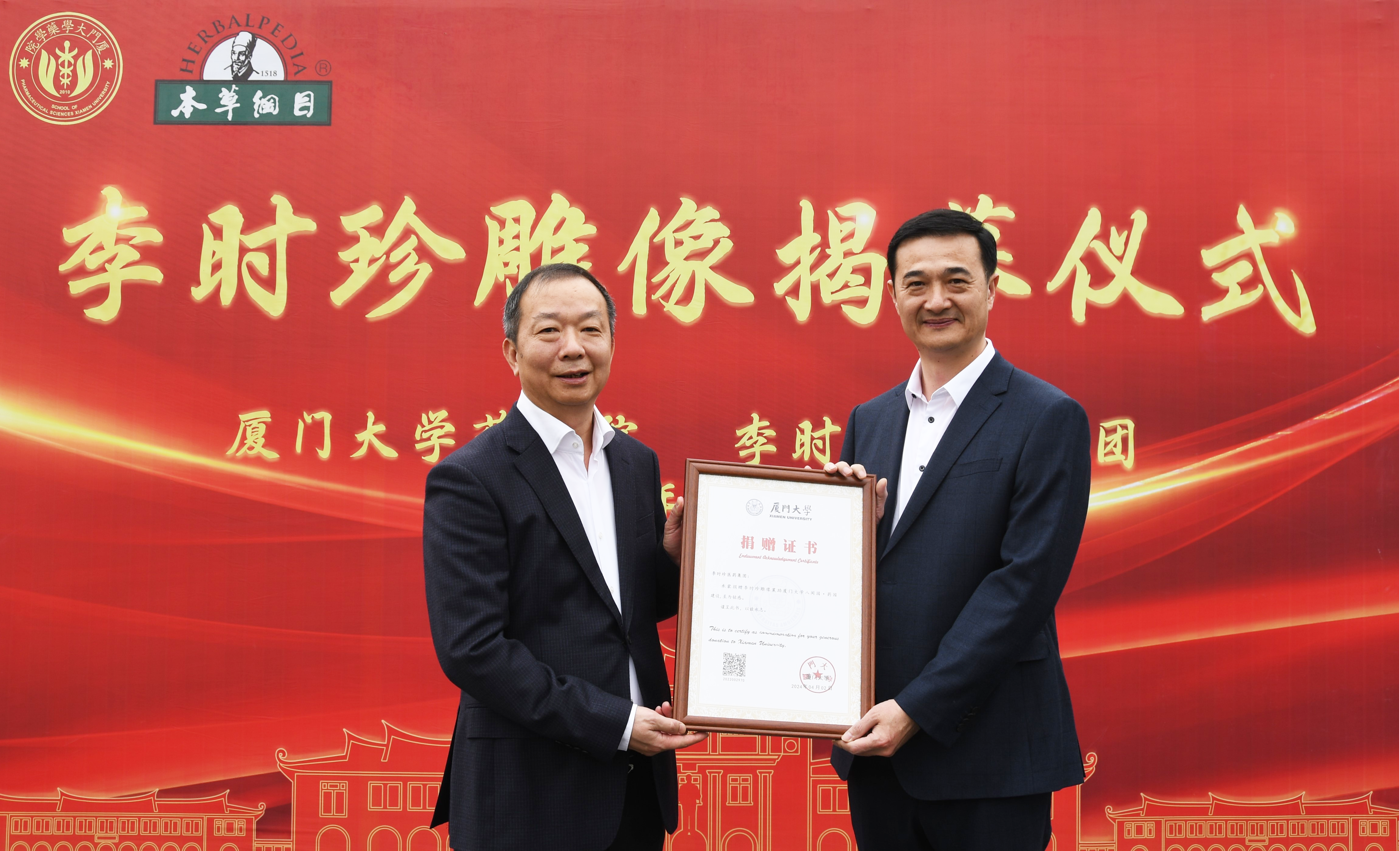 On April 2nd 2024, the ceremony for completing the statue construction of Li Shizhen, who is a renowned expert on medicinal herbs in China during the Ming Dynasty (1368-1644), was held in Fujian Garden -Pharmaceutical Garden of Xiang'an Campus Xiamen University. The attendants of this ceremony include Mr. Chen Guang (Assistant President of Xiamen University and Director of Administration Committee of Xiang’an Campus), Mr. Yang Mingjiang (President of Li Shizhen Medicine Group), Mr. Song Youliang (Secretary of the Party Committee of the School of Pharmaceutical Sciences, Xiamen University), Mr. Du Chao & Ms. Huang Minmin (Deputy Secretary of the Party Committee of the School of Pharmaceutical Sciences, Xiamen University), Prof. Chen Haifeng (Vice Dean of the School of Pharmaceutical Sciences, Xiamen University), and the student representatives from the Undergraduate Party Branch as well as Zhao-Hua-Xi-Shi Club.