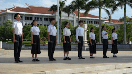 With the majestic national anthem “March of the Volunteers”, the bright Five-starred Red Flag rose slowly. Under the national flag flying in the wind, the students recited the poem “Taking on our Responsibilities and Building a Stronger Country”, showing the pioneering spirit of the teachers and students of Xiang’an campus.