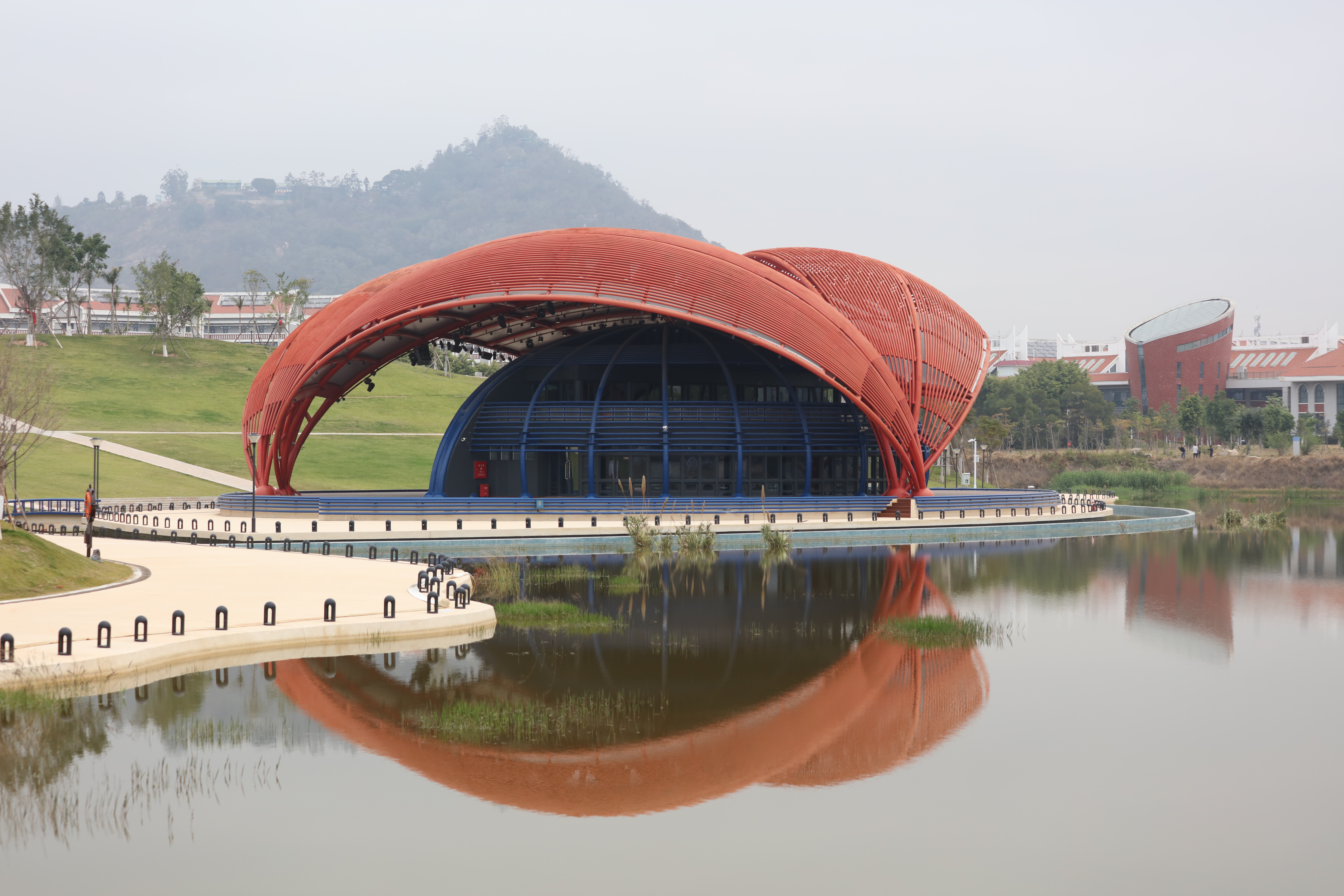 Junhaihaoyun Student Square is located in the middle of Xiang’an Campus, with a planned total construction area of 1100 square meters, which can hold large-scale artistic performances. The Lakeside Cafe is the perfect place for teachers and students to relax, mingle, sing and read. The shape of the student square is like a red bougainvillea, blooming in the Lotus Lake, which is also in line with the design concept of "three (leaves) living things".