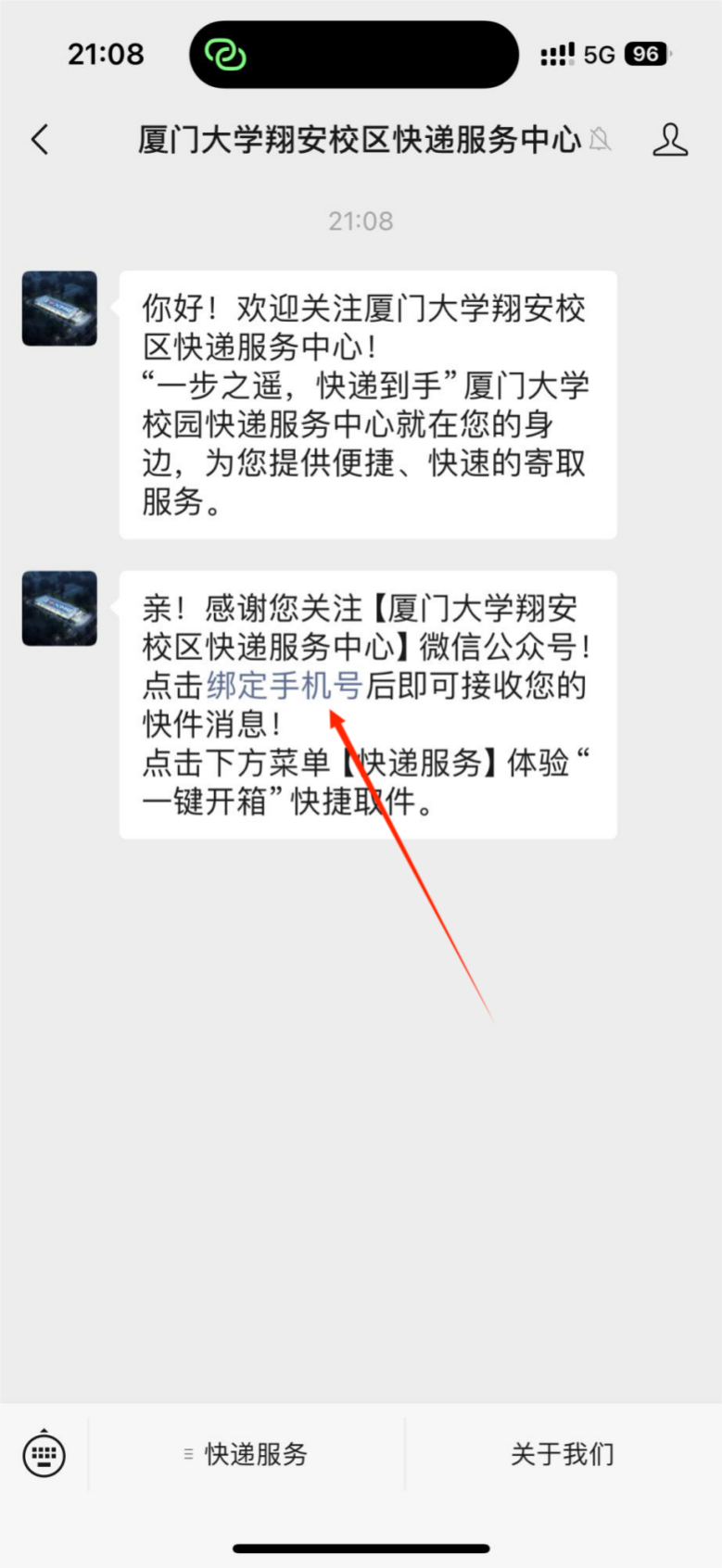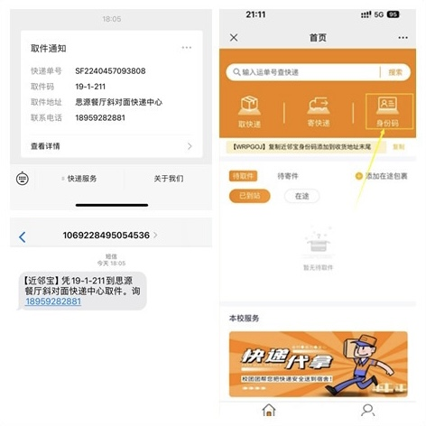 Follow the official WeChat account of Express Service Center of XMU Xiang’an Campus and bind your mobile phone number to receive the notification.