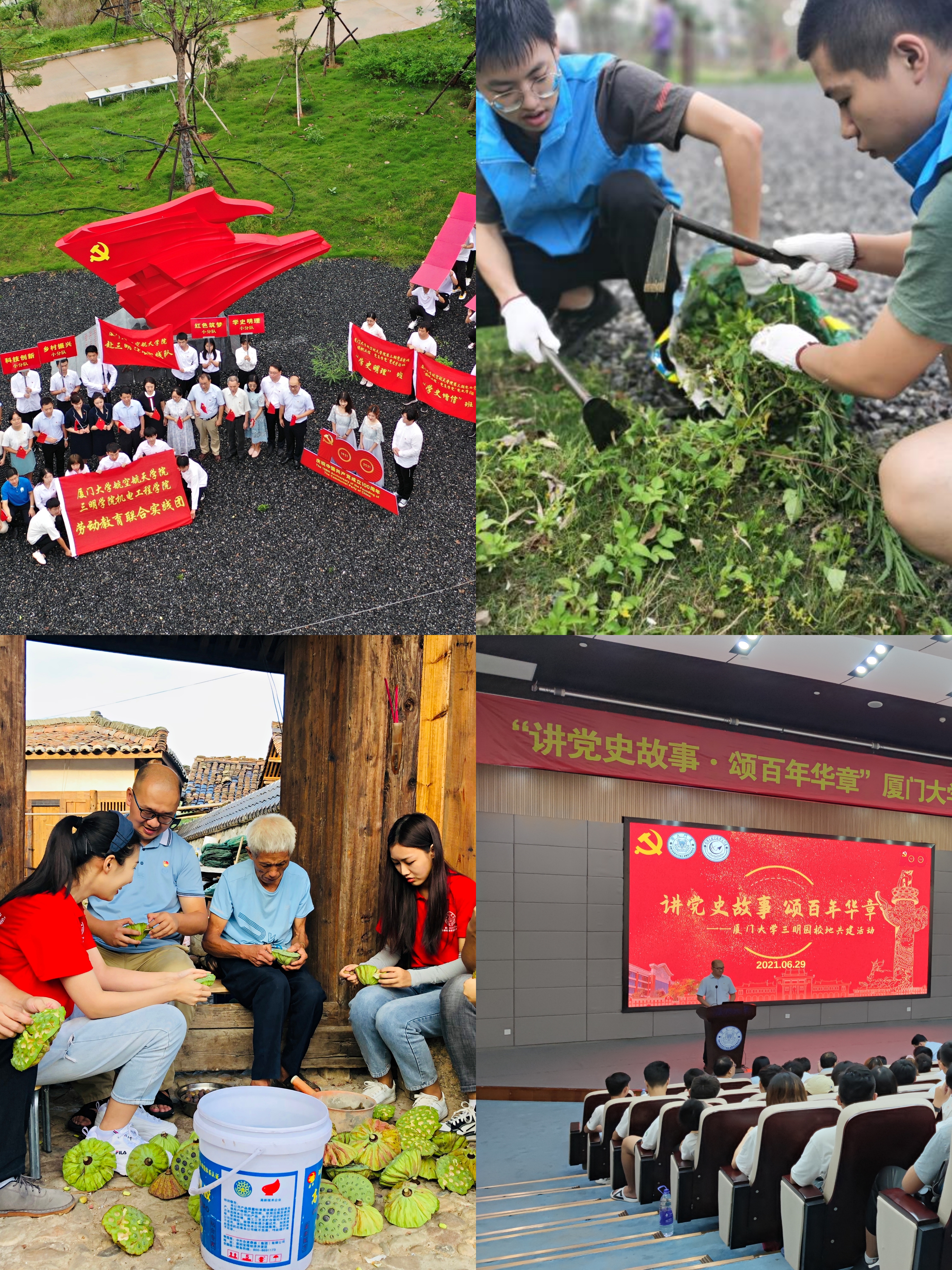 以航空航天学院对接“八闽园”三明文化广场为契机,与三明市政府、三明学院开展校地、校际共建共享活动,积极挖掘三明市承载的厚重历史与红色资源开展党史学习教育,邀请三明市“风展红旗•如画三明”宣讲团来校宣讲党史。组建厦门大学航空航天学院——三明学院机电工程学院“八闽”劳动教育联合实践团,结合赴三明社会实践活动和“八闽园”劳动教育实践,将劳动教育的理念和内涵予以拓展和辐射。自2021年“五一”起,在八闽园组织开展“深化劳动教育·培育时代新人”主题劳动实践活动,将劳动教育体系化、常态化。