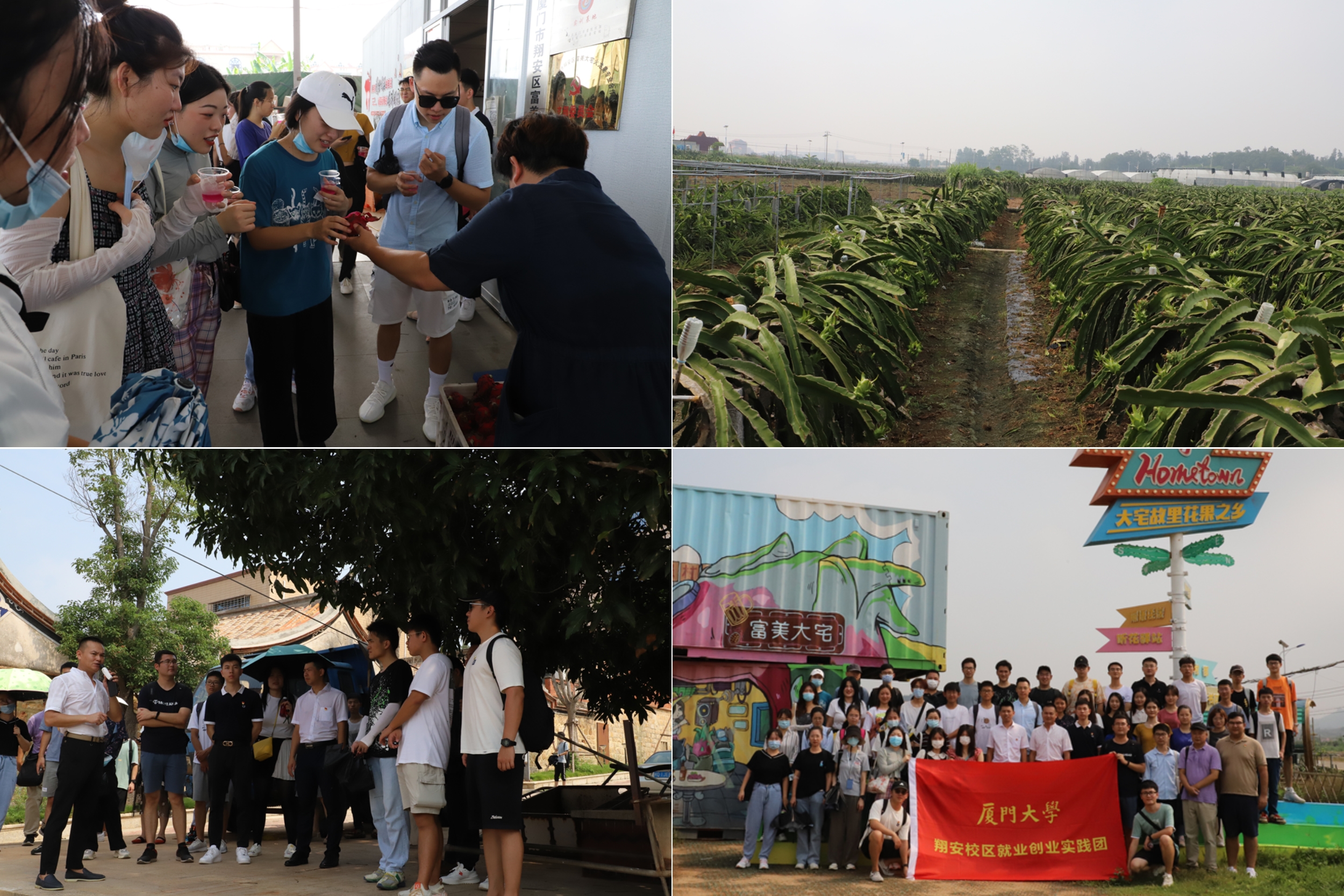 实践队第一站走进香山大宅村,参观大宅社区火龙果种植基地、育苗玻璃房、火龙果专业合作社、特色民宿等。在大宅社区党总支书记陈锦芳讲解下,同学们了解了大宅村的基本情况、发展历程及未来规划。大宅村以乡村振兴示范村建设为契机,依托香山风景区,探索出了一条适合本地农村发展的特色之路——建设火龙果绿色生态产业链,将乡村旅游与农业生产、农村风貌、农民生活深度融合。千亩火龙果植株郁郁葱葱,结实的枝条四处延伸,一片勃勃生机,映入眼帘的是一幅产业兴旺、生态宜居、乡风文明、治理有效、生活富裕的现代乡村画卷。国际中文教育学院2020级硕士生巫梦真表示,总书记多次强调“知行合一”,学到的东西,不能停留在书本上,不能只装在脑袋里,而应该落实到行动上,做到知行合一、以知促行、以行求知。作为厦大学子,我们要用所学知识为打造富美大宅、助力乡村振兴贡献智慧和力量。