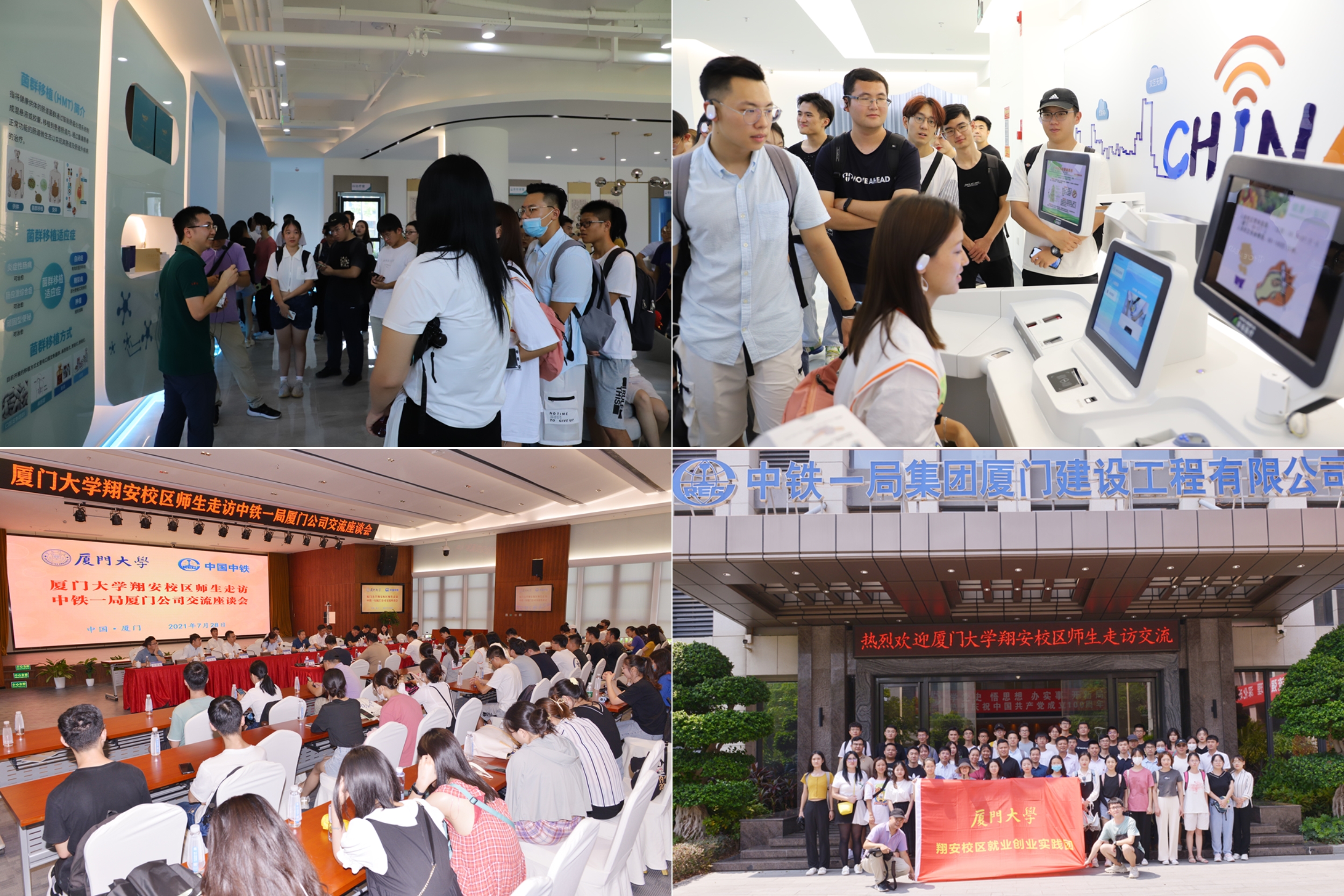 接着,实践队实地考察了中铁一局厦门分公司。参观职工之家和企业成果展厅,近距离感受企业文化。中铁一局厦门分公司发扬海洋文化和榕树精神,立定精品工程报国之雄心,勇攀发展新高峰。实践队与翔安区人社局、团区委、中铁一局厦门公司相关领导就推进实习实践、就业创业、共建育人平台等进行座谈交流。通过观看企业宣传视频,与企业、校友面对面交流,同学们详细了解了企业人才培养、科技创新等情况。在深入交流中引导同学们思考未来发展方向,激励同学们不断提升综合能力,明确职业规划,增强就业竞争力。