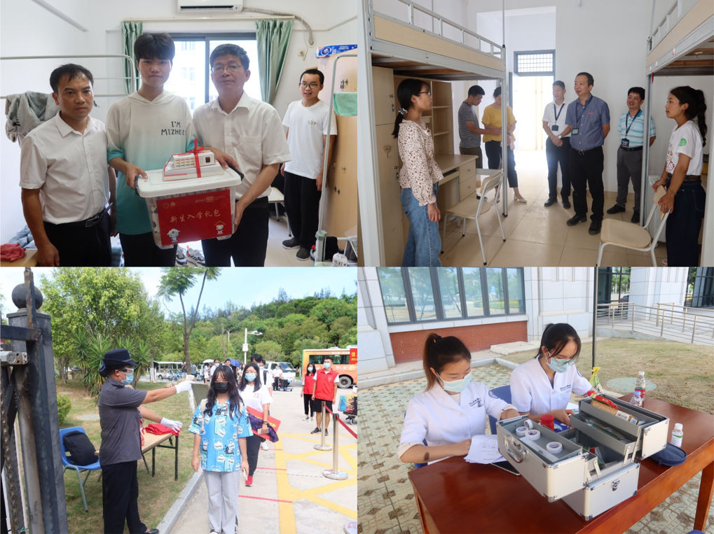 9月9日,校党委副书记徐进功,校长助理、翔安校区管委会主任陈光分别带队来到迎新现场,走访各学院注册点、学生公寓园区等地,看望慰问入住新生,为他们送上包含生活用品和书籍的“爱心大礼包”,勉励同学们珍惜机遇,认真学习。徐进功强调,新生报到是同学们“入学第一课”,是展现校区管理水平和校园文化的重要窗口。各单位要认真做好迎新服务工作和疫情防控工作,在保障健康安全前提下,让同学们体会到学校的温暖和关怀。
