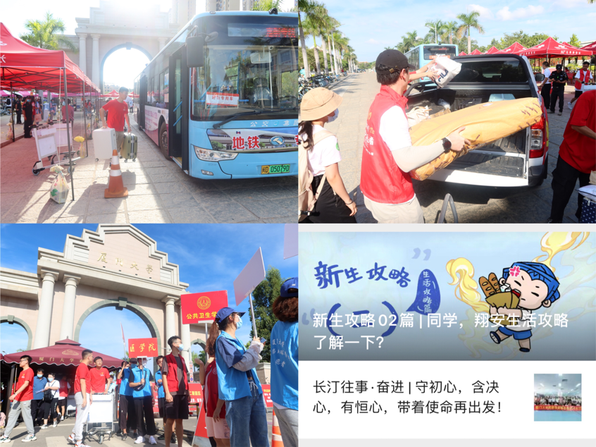 根据疫情防控要求,新生家长及车辆不能陪同入校。保卫办协调交警部门,在沙美路实施交通管制,在学校东大门周边道路布置车辆引导牌,联系特房集团搭设迎新帐篷,在校外设置家长服务区,在校内悬挂指示路标。校区办积极争取各方资源,联系厦门市公交集团、中国电信、中国移动、中国联通等单位贴心安排大巴接驳车、行李转运皮卡车循环穿梭校园,运送新生及其行李至公寓园区,打通校门进宿舍“最后一公里”。管委会工作人员精准调度,合理安排运力,交通顺畅,运输高效。团工委在“厦门大学青春飞翔”微信公众号推送校园生活指南,帮助新生更快更好融入校园生活。各个迎新点里,引导牌、小推车、咨询点、行李暂存处等设置齐全周到,新生报到手续办理轻松搞定。