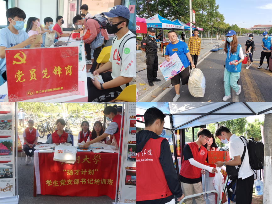 党建带团建,在迎新工作一线,处处党旗飘扬、团徽闪烁,志愿者用行动诠释厦大人的担当。校门口、迎新点和宿舍区均设立党员先锋服务岗、咨询服务点;“扬才班”学员顶着烈日在校门口帮助新生搬运行李、疏导交通;不少新生刚完成报到注册,不顾路途劳累加入志愿者队伍,以新迎新、以心迎新,贡献“报名后,我就成了你”的青春力量。参加迎新工作的师生们表示:“每一个岗位上的服务都是充满挑战与劳累的,但有同学们的一声谢谢,内心便充满巨大的成就与幸福感。为新生服务、替家长分忧、为广大师生树立榜样,也是生动的开学第一课。”