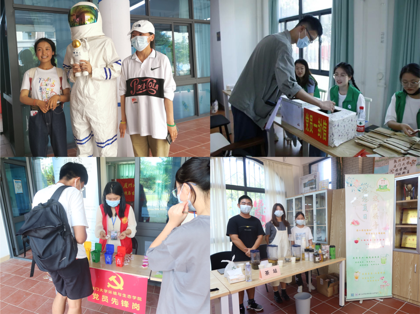 航空航天学院厦大机器队伍,向新生们展示航院风采,彰显校区“创新引擎”活力;药学院设置茶站,提供玉粒红盏(甘草红枣茶)、眉黛青山(橄榄海蜜茶)、采菊东篱(山菊明茶)等茶品,为大家消暑一“厦”;海洋与地球学院邀请新生加入“海洋小纵队”,在留言板上寄语新生活,展望新征程;亲手制作叶脉书签,设计垃圾分类知识宣传展板,环境与生态学院依托有趣的游戏,将环保绿色的理念播种在新生心中;学生党员致信每位新生,饱含学长学姐的建议和感受,“党员一封信”这个传统迎新项目在能源学院传承着代代关怀……