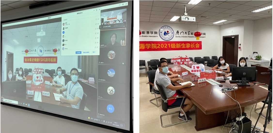 2021年9月20日6点30分,厦门大学能源学院召开线上新生家长会。能源学院党委副书记罗俊峰,副院长赵英汝,2021级本科生班主任张尧立副教授、王德超助理教授、本科生教学秘书孙悦琦以及本科生辅导员施珩参会。