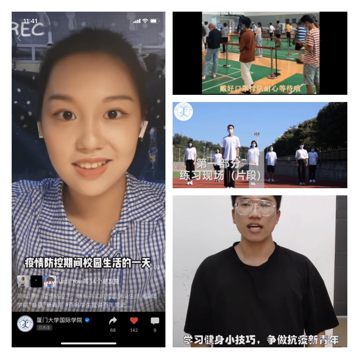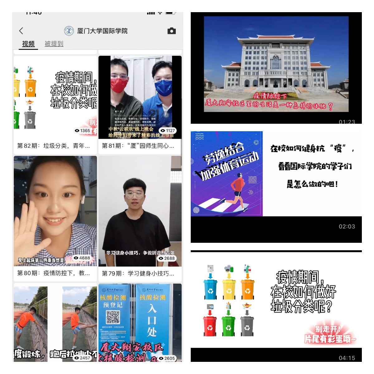 突如其来的疫情打乱了同学们的校园生活,线下课程全面转为线上授课,运动场馆关闭,食堂取消堂食,校园封闭式管理……疫情防控期间,为了帮助同学们尽快适应疫情形势下的校园生活,国际学院“自强”新青年网络文化工作室因时而进、因势而新,从同学关切和关心的问题入手,充分利用新媒体平台优势,守正创新,以朋辈视角、Vlog等青年喜闻乐见的方式,在学院官方视频号上推出了伟大抗疫精神宣讲、健身抗疫倡导、系列教科书式的校园学习生活示范等微视频,举办中秋“云联欢”直播活动,引导广大师生同心抗疫、共克时艰,自觉将疫情防控融入到个人的学习、运动等日常生活中。此次“云抗疫”取得了良好效果,微视频共推出8期,浏览量达1.7万余次;中秋“云联欢”直播间观众人数达1千余人,互动总数1206次,获得5.1万个赞。