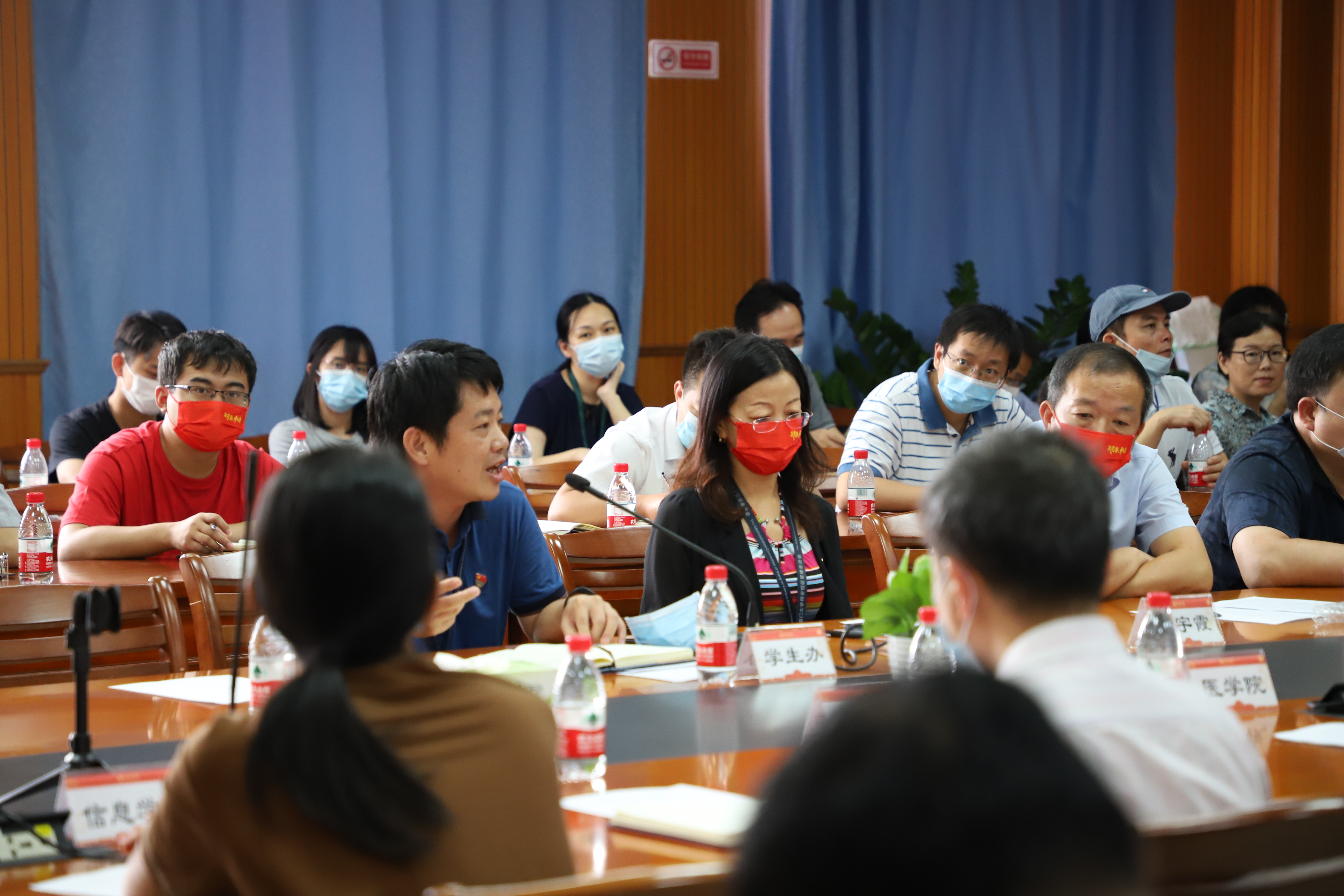 会上,三位学院代表分享了有关安全教育工作的经验。医学院党委副书记王坤钟以本学院电动滑板车起火事故为典型案例,指出大多数学生仍存在危机意识不足的问题,强调做好日常安全教育的必要性,并分享有关消防演习的经验。航空航天学院党委副书记林蔚分享了学院建立网格化管理,组织学生辅导员、党员深入学生宿舍开展防诈骗教育宣传,并为学生提供心理和法律指导的防诈骗工作经验。环境与生态学院党委副书记李静汇报了学院狠抓党的建设、意识形态工作、内部治理、基层组织建设、党员教育管理、师生思想政治教育等六方面有关意识形态工作,坚决履行基层单位意识形态工作责任。