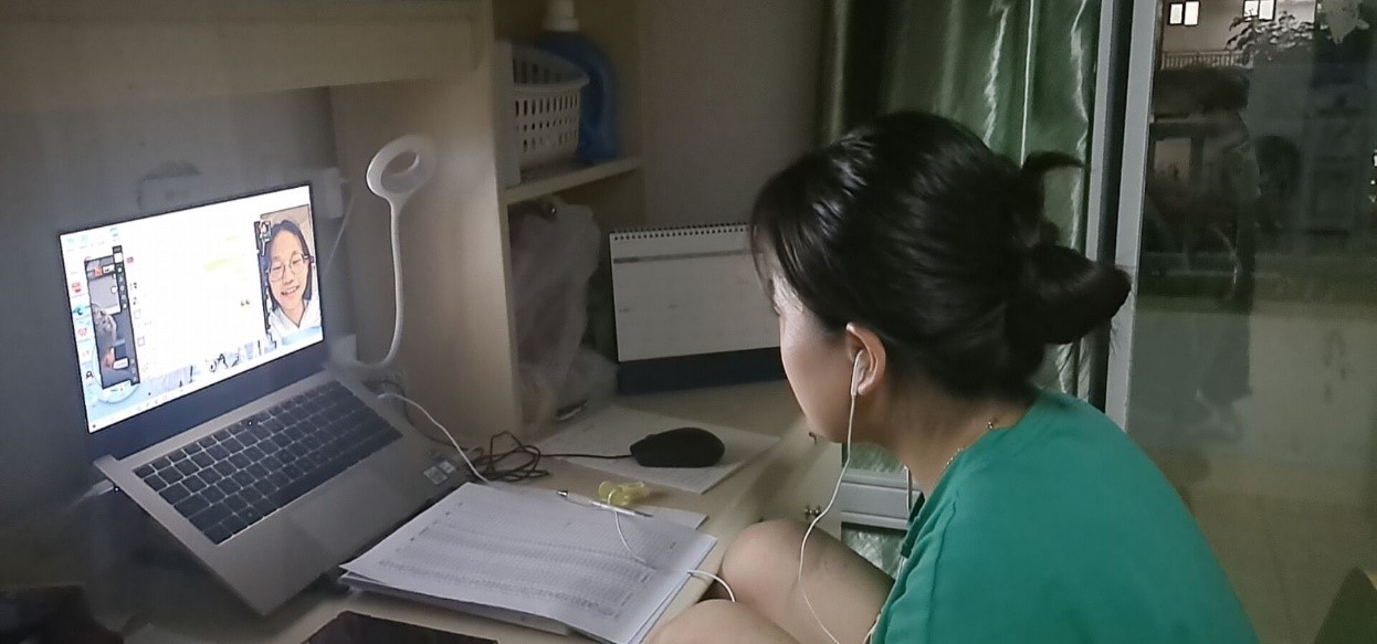 吴文霖是一名刚入学的高一新生,学业上的压力让她一时无法适应,而身为医护人员的父亲由于担心安全问题不敢轻易回家,无法帮孩子排解入学的焦虑情绪,于是求助学院志愿者。经过双方积极沟通,陈航国志愿者关注学员的学习和心理状况,有针对性地进行辅导。在陈航国的耐心开导下,这位学员走出了因网课而产生的焦虑,全身心投入学习。
