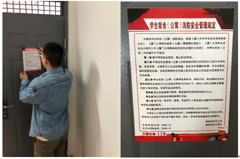 入住前,校区保卫办、公寓办已经在宿舍张贴好《学生宿舍(公寓)消防安全管理规定》,让同学们一到宿舍就能及时了解校区相关的安全管理规定以及日常所需要注意的事项。