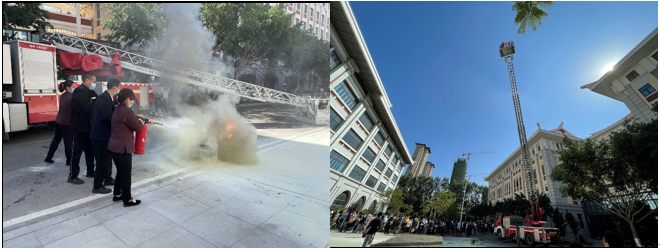 11月24日,马来西亚分校近千名学生在翔安校区南存钿楼开展应急逃生疏散演练。上午10时30分,演练正式开始,工作人员点燃烟雾弹,南存钿楼顿时蔓延起滚滚浓烟,随着一声声急促的火灾警报声响起,同学们立即作出反应,用湿毛巾捂住口鼻,弯下身子迅速从房间里撤离。在安保人员的引导下,同学们按照指定路线有序疏散至安全区域。住在楼层相对较高的两名“被困人员”,冲到阳台呼救,等待消防人员救援。此时,消防车迅速就位,云梯升起,新店消防救援站的消防员通过消防云梯车实施营救,将“被困人员”送至安全区域。疏散演练活动结束后,校区保卫办老师给同学们讲解了灭火器的类型、使用方法、注意事项等知识,现场组织同学们和有关工作人员开展灭火实操演练。最后,在消防员的帮助下,几名学生代表系上安全带,登上消防云梯车,零距离体验消防员的救援工作。