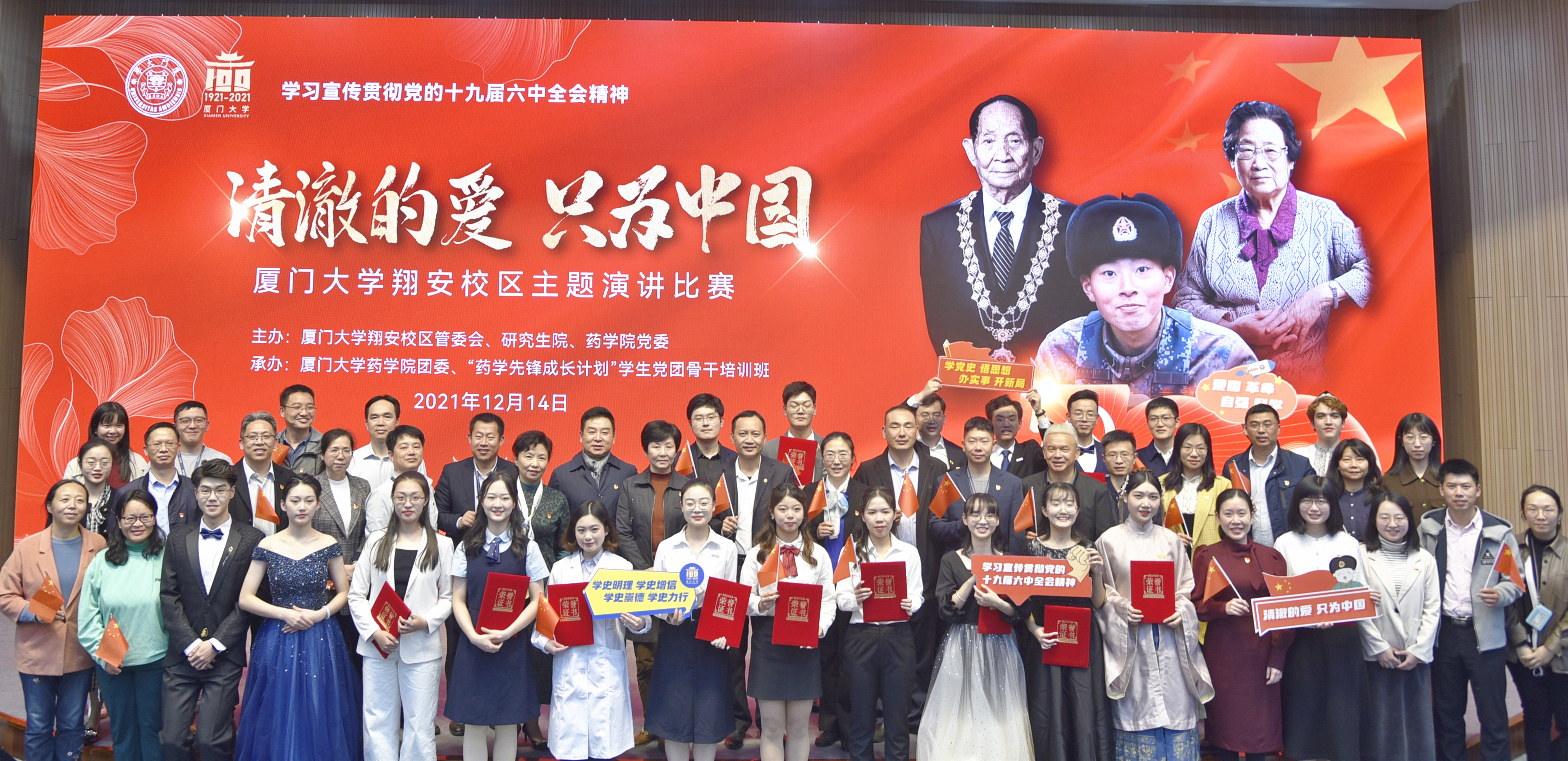 本次比赛由厦门大学翔安校区管委会、研究生院、药学院党委共同主办,旨在学习宣传贯彻党的十九届六中全会精神,创新形式开展党史学习教育,持续推动习近平新时代中国特色社会主义思想在校园里走深走实、落地生根。组织部、学生工作部、研究生院、翔安校区管委会等部门领导和300多名各院师生一起参加了活动。