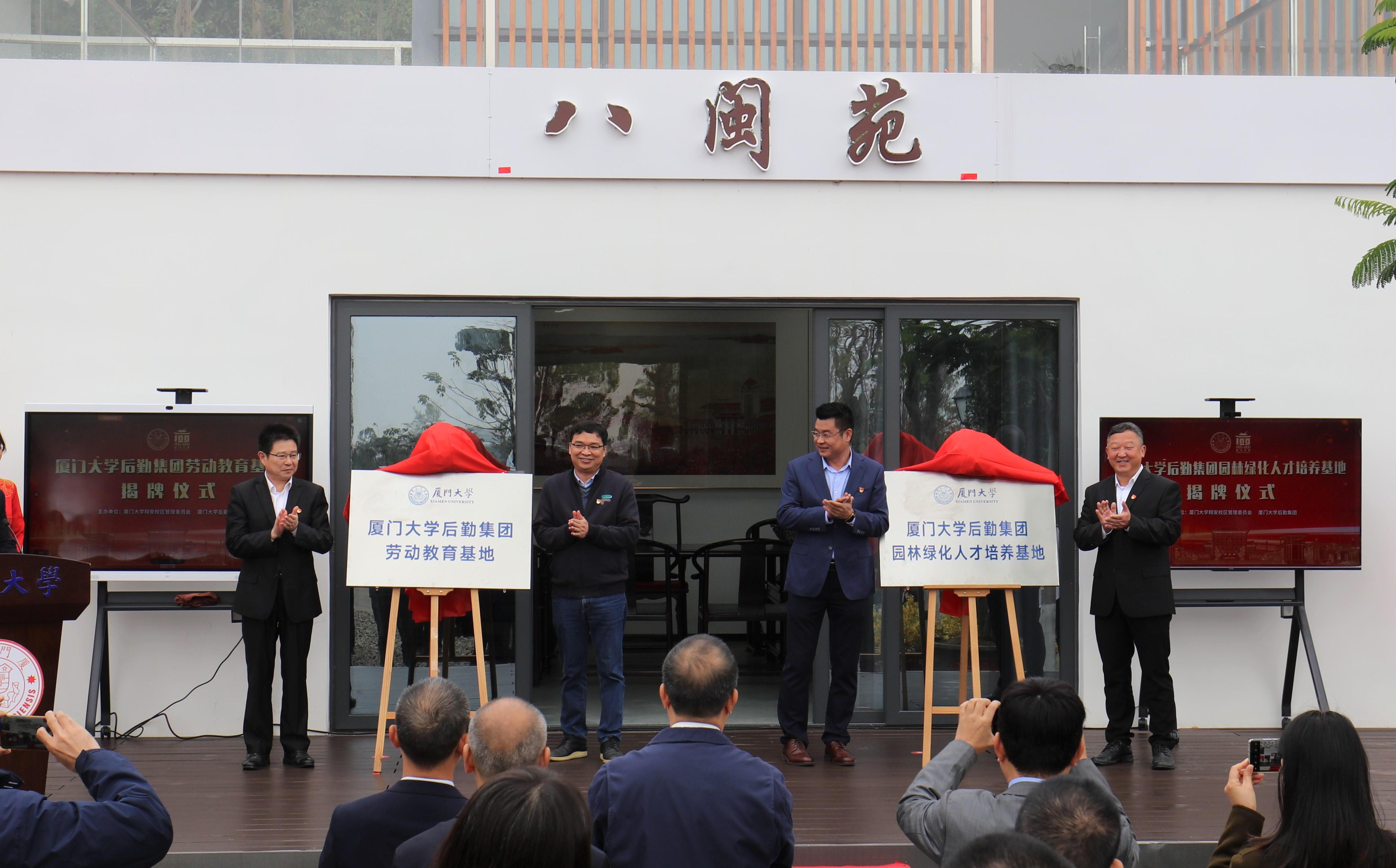 会议开始前,陈光、张明智、杨云良、林公明共同为“八闽苑”揭牌,杨云良、左正宏为“厦门大学后勤集团劳动教育基地”揭牌,林公明、陈怀锋为“厦门大学后勤集团园林绿化人才培养基地”揭牌。