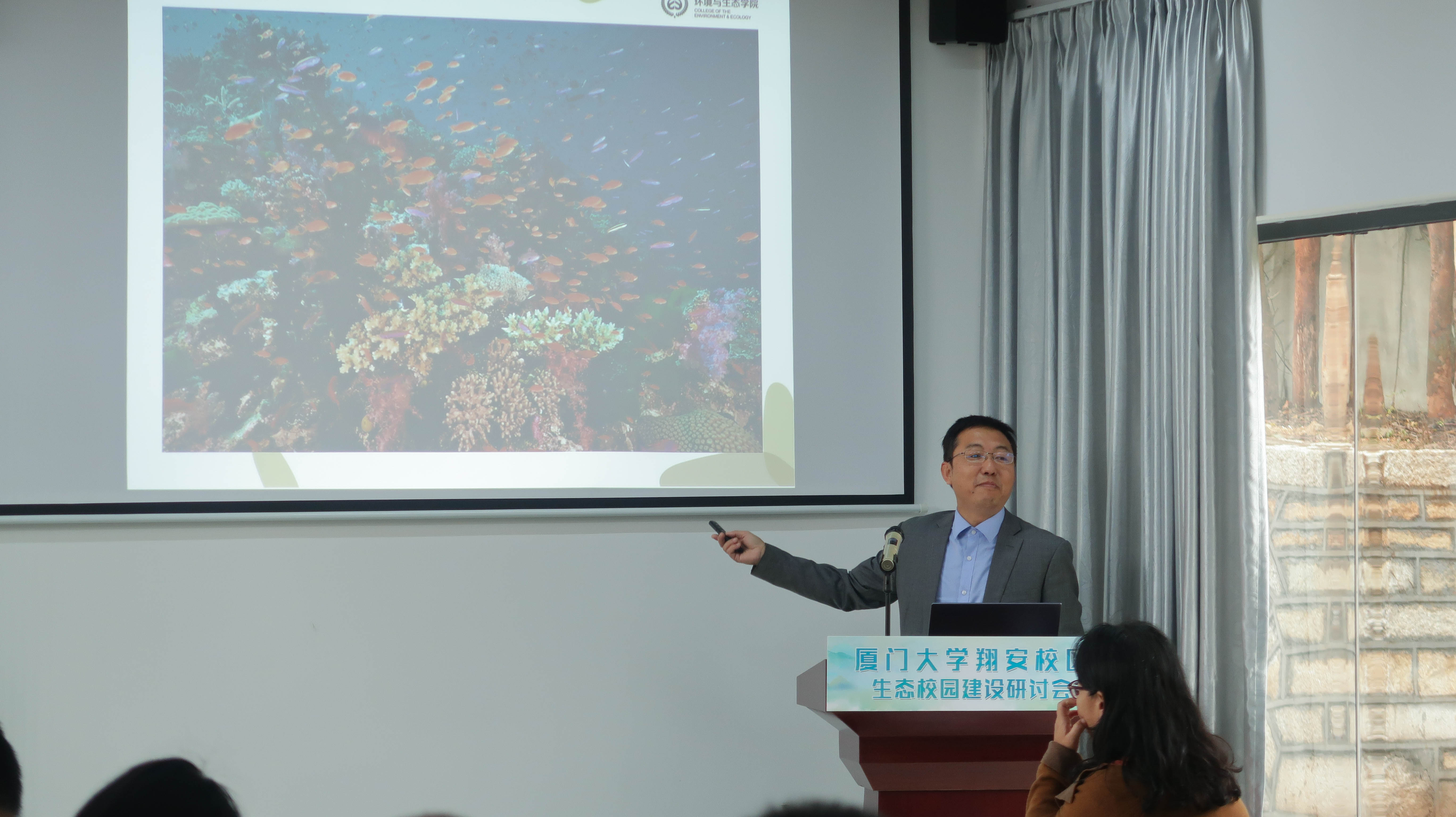 研讨会上,环境与生态学院黄凌风教授作《生物多样性与生态校园建设》主题报告。黄凌风教授以习近平生态文明思想为引领,围绕生物多样性和生态校园以及两者的关系,提出了翔安校区生态校园建设建议。他提出,要统筹校园生态资源,科学构建生态校园,引导师生共同参与生态校园建设,促进校园高质量可持续发展,努力讲好生态校园的厦大故事。