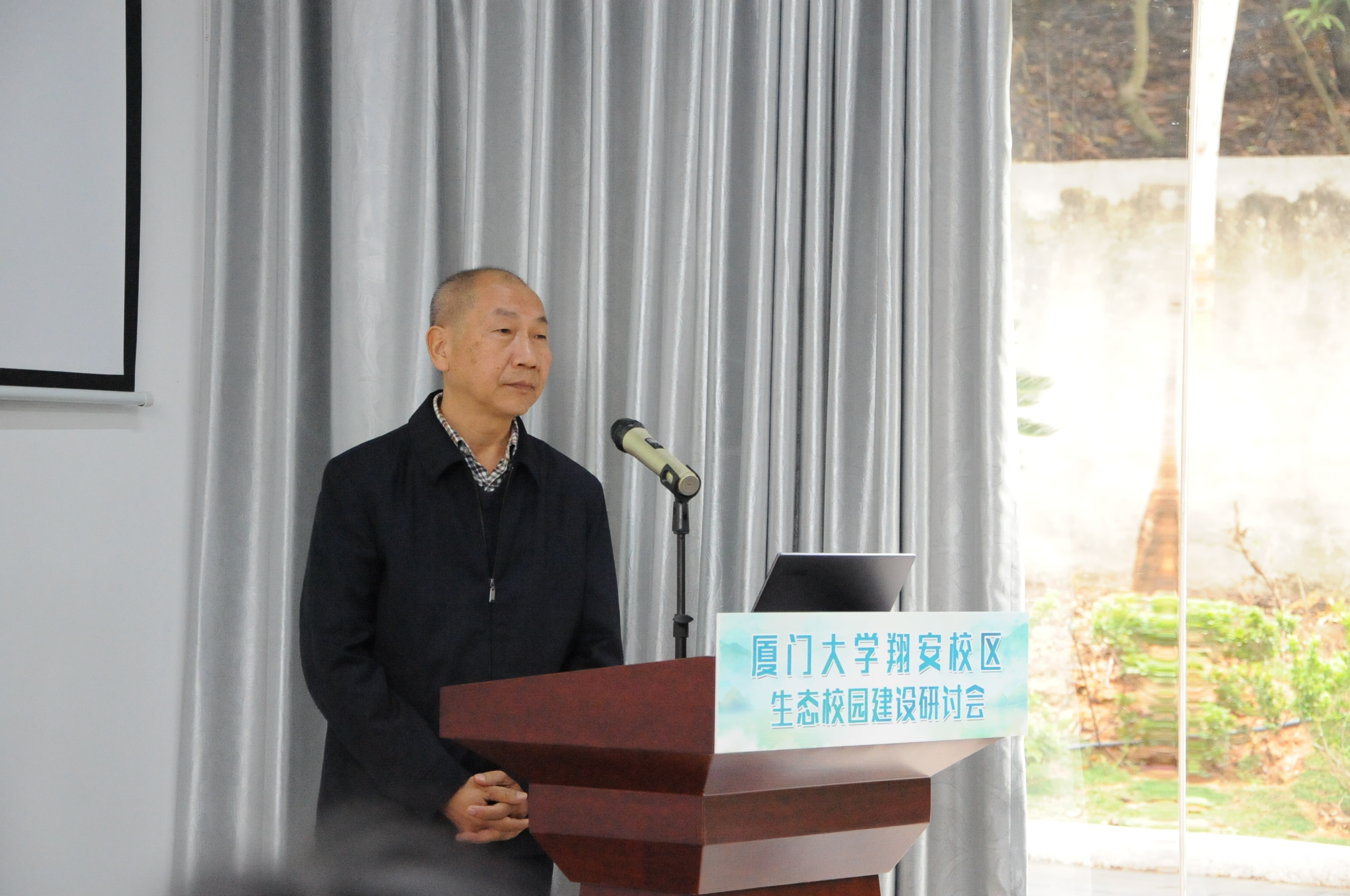 环境与生态学院李振基教授作《翔安校区生态校园创建建议》主题报告,提出了翔安校区生态校园建设初步规划。通过对翔安校区生态环境现状分析,他建议,要以生态校园为目标,与校区绿化现状相协调,整体构思,分区规划,分步实施。