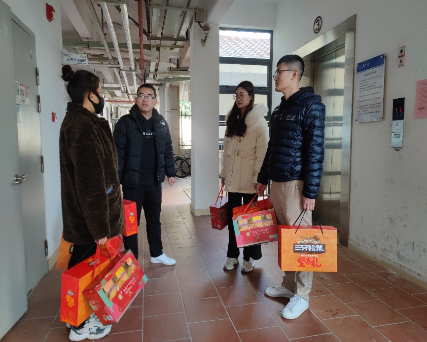 年末岁尾,冬日送暖。1月3日至13日期间,公共卫生学院学工组开展新春慰问活动。院党委副书记庄曦、辅导员沈鑫、赵煜、戴秀芬,以及学生骨干等人前往学生社区慰问学生,为他们送去新年祝福与慰问品。