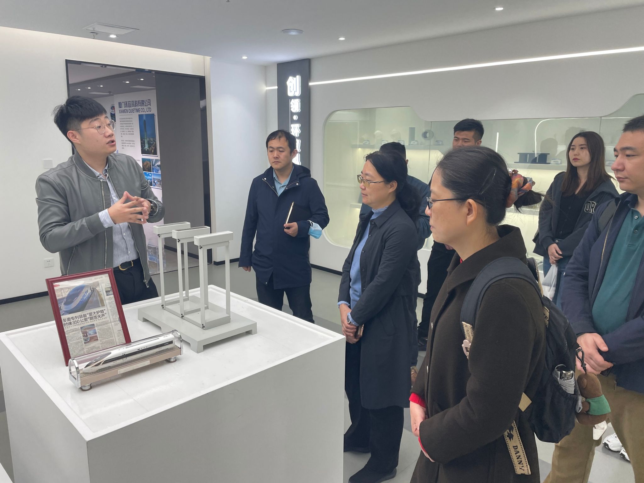 黄艳萍一行首先来到厦门环寂高科有限公司,公司董事长厦门大学航空航天学院肖望强教授向各位老师介绍了公司的主要研究方向和技术特点。黄艳萍表示,环寂高科公司技术力量雄厚,是高校技术成果转化的成功典范。肖望强表示,公司将进一步探讨参与创新创业工作的机会和模式,希望能为学校双创事业贡献力量。