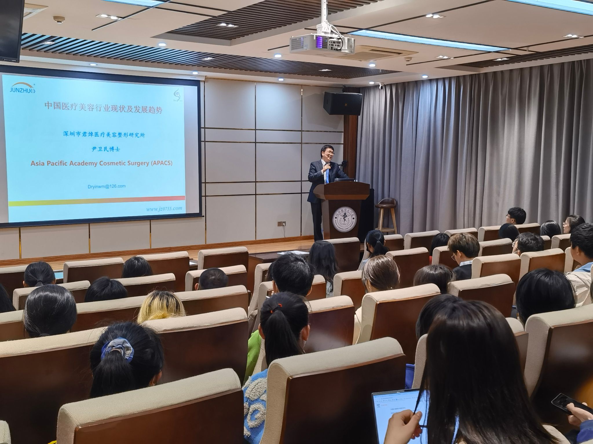 而为了更好地协助院校做好学生的教育培养,君焯英才助学金每年还会到医学院举办一场公开课。从《医学生的人生规划》到《医学生沟通能力的培养》,再到《中国医疗美容行业现状及发展趋势》,不止是受助学生,许多医学院学子都曾在尹博士的公开课中收获成长的力量,而关于医疗美容行业的分析更是为许多求职的同学提供了详细的就业指导。