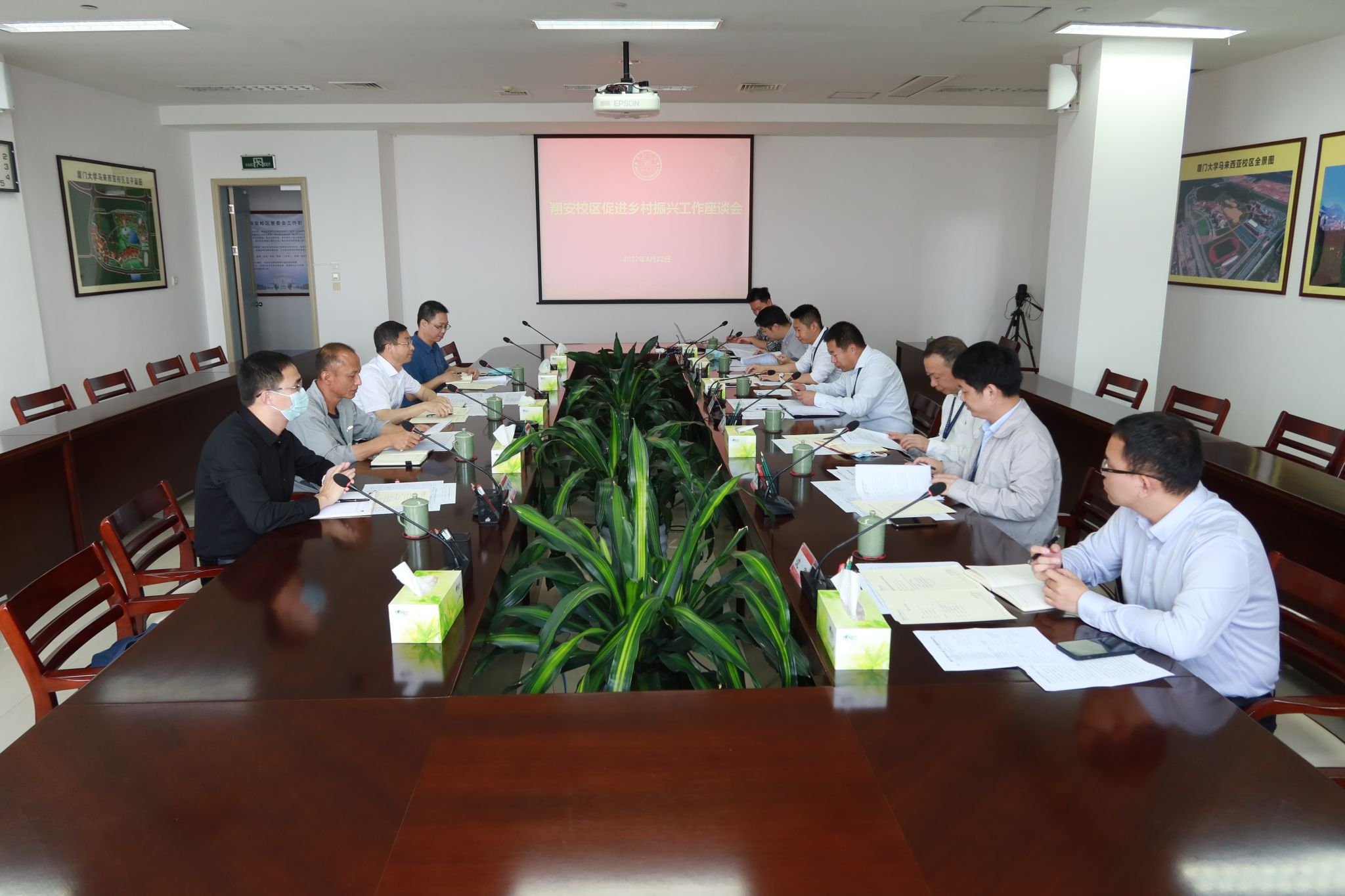 翔安校区管委会副主任马龙主持会议并介绍了《厦门大学翔安校区促进翔安区乡村振兴工作方案》和校区各单位对接服务翔安区乡村振兴有关项目开展情况。
