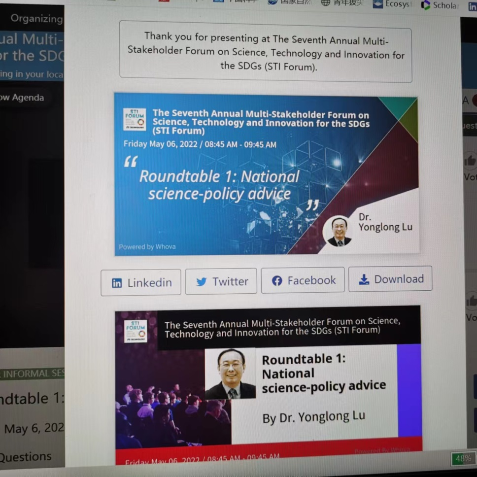 第七届联合国科技创新促进可持续发展目标多利益攸关方年度论坛(Multi-stakeholder Forum on Science, Technology and Innovation for the Sustainable Development Goals, 简称STI论坛)于2022 年 5 月 5 日至 6 日在联合国纽约线上召开。