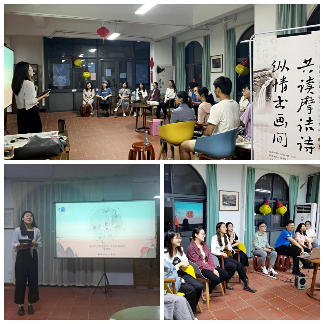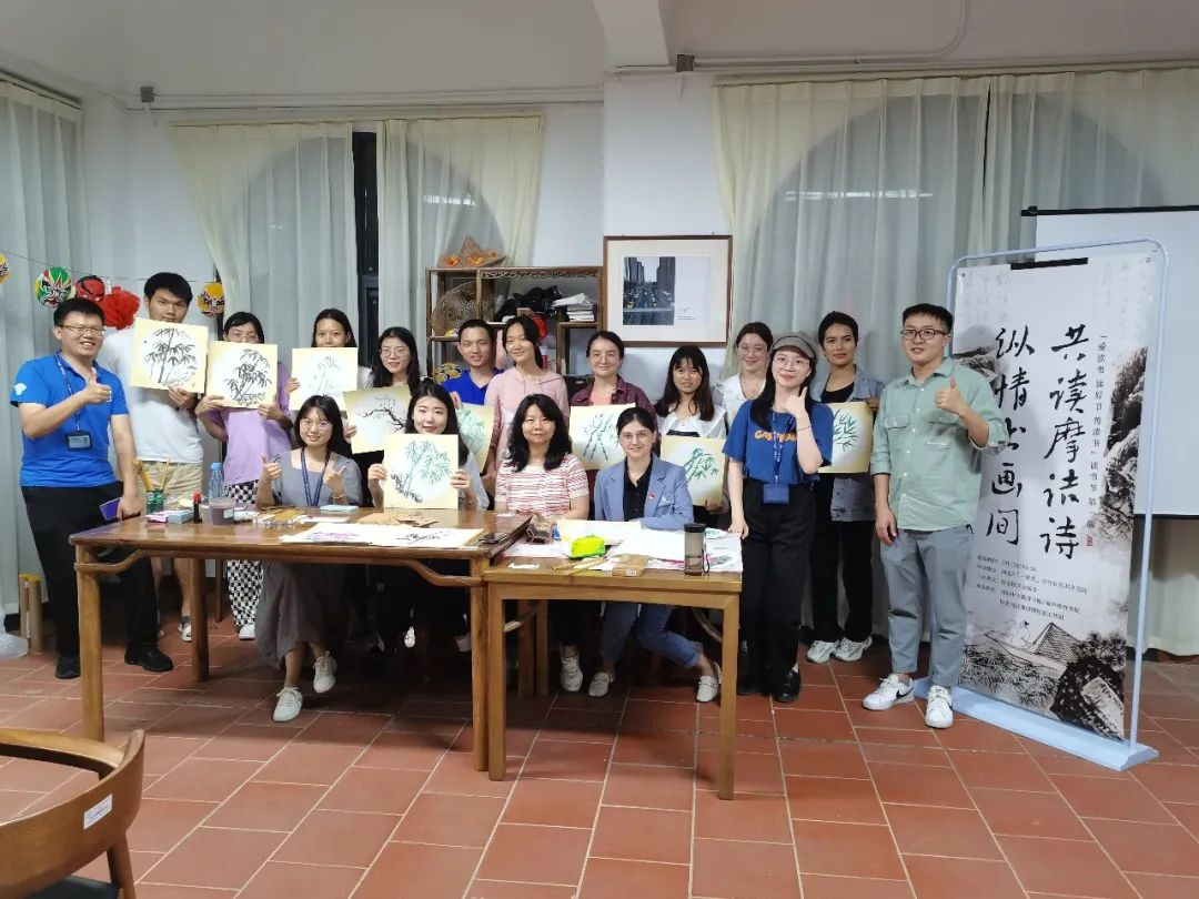 5月13日,“爱读书 读好书 善读书”读书节第一期——“共读摩诘诗,纵情书画间”读书交流会活动在翔安校区国光二“一站式”学生社区共享空间举办。翔安校区公寓办联合国际中文教育学院/海外教育学院,邀请2021级研究生李颖静同师生交流诗作,教学国画。来自翔安校区各学院的同学们共聚一堂,许多少数民族同学也到场一同感受传统文化的浸润。