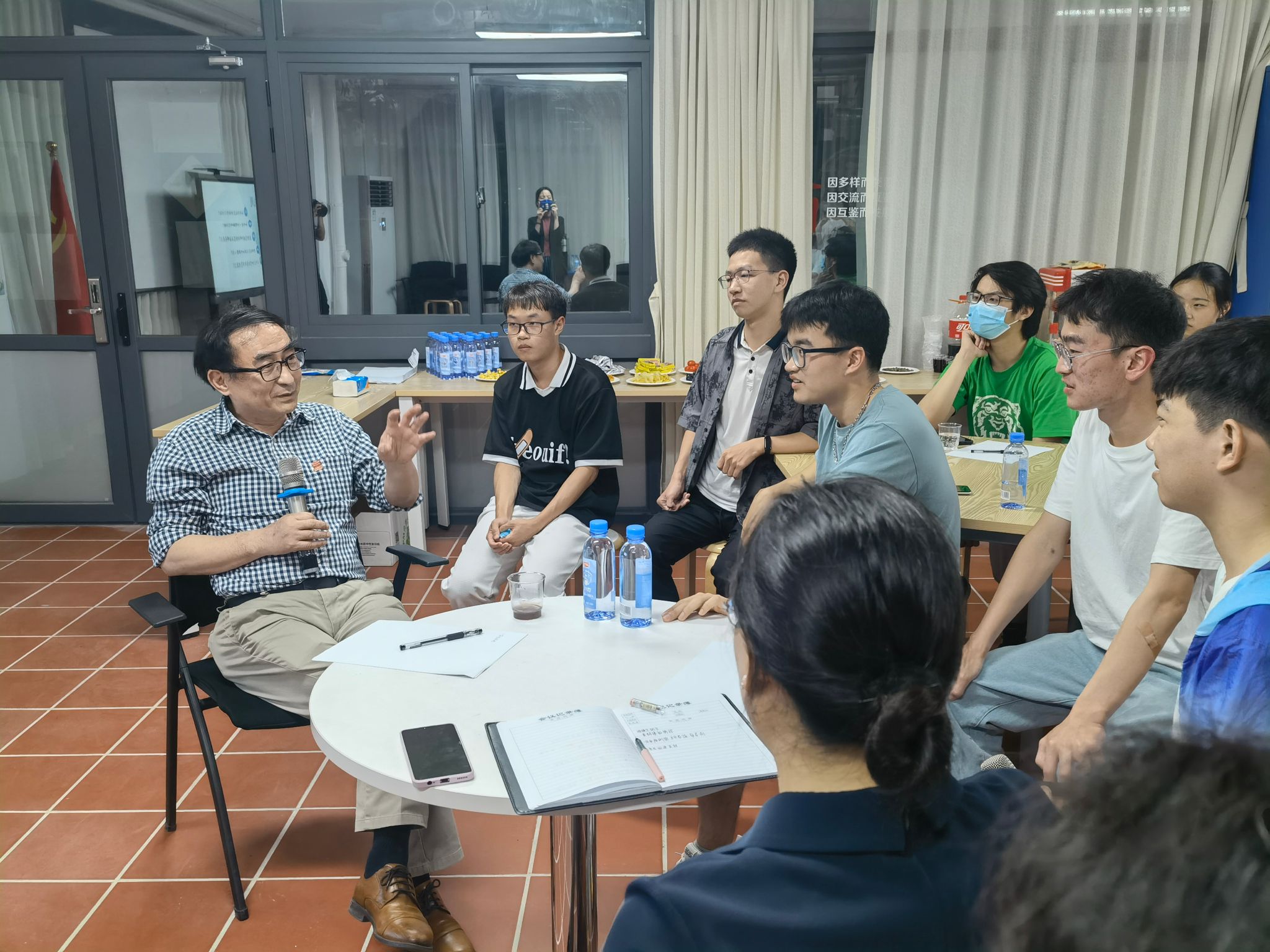 活动现场,韩家淮院士与同学们坐在一起畅谈科研与人生,现场氛围轻松愉悦。同学们就如何安排好大学学习、如何坚持科研之路、如何做好时间规划等进行了一系列提问。韩家淮院士在回答时向同学们强调:“做科研,要有劳模精神,在科研的过程中,肯定会遇到困境,就看自己能不能扛住压力,是否抵挡得住社会的诱惑。科学研究的开花结果本不是一蹴而就的,而是一个苦其心志、劳其筋骨的漫长过程。”他提醒同学们,无论做什么,要做好一定要脚踏实地,切忌好高骛远。韩家淮院士的分享,让学生们受益匪浅。