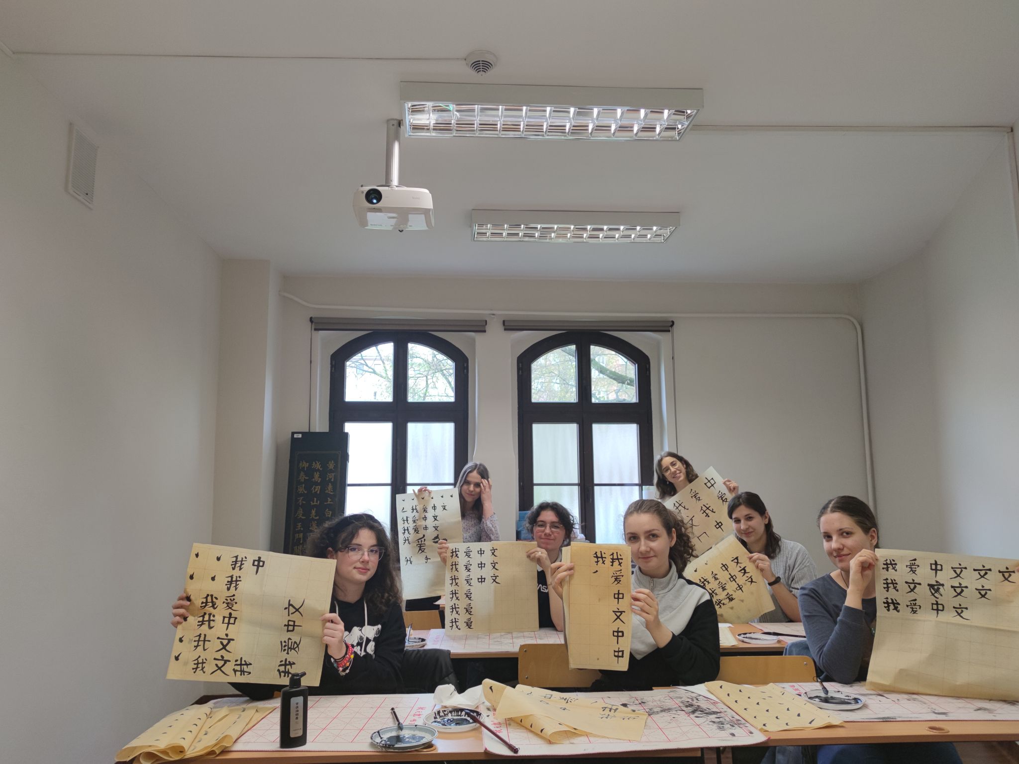(图为弗罗茨瓦夫大学孔子学院书法课)