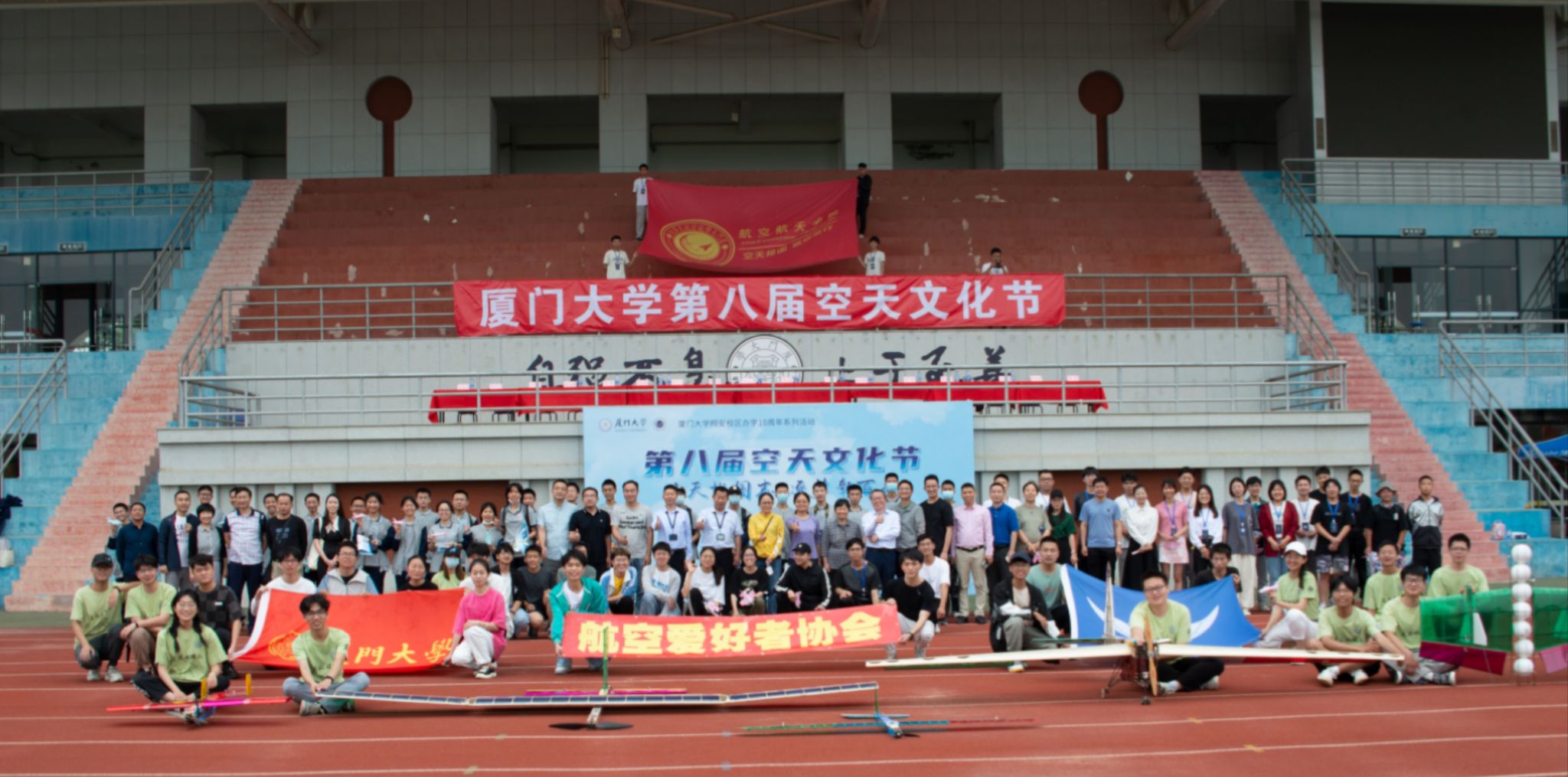 鹏路翱翔,一往无前;飞鸿羽翼,历久而新。值此厦门大学翔安校区办学十周年之际,经过精心筹备,厦门大学第八届空天文化节在5月22日下午于翔安校区一期操场拉开序幕。本届空天文化节由翔安校区管委会、教务处、校团委主办,航空航天学院承办,厦门市航协支持。翔安校区管委会副主任马龙、教务处副处长黄艳萍、翔安校区办公室主任兼学校办公室副主任薛志平、厦门一中教务处副主任纪希弟、厦门市航协党委书记纪宏毅、航空航天学院党委副书记林蔚、自动化系主任洪文兴、教育培训中心副主任(主持工作)刘万山等参加开幕式。