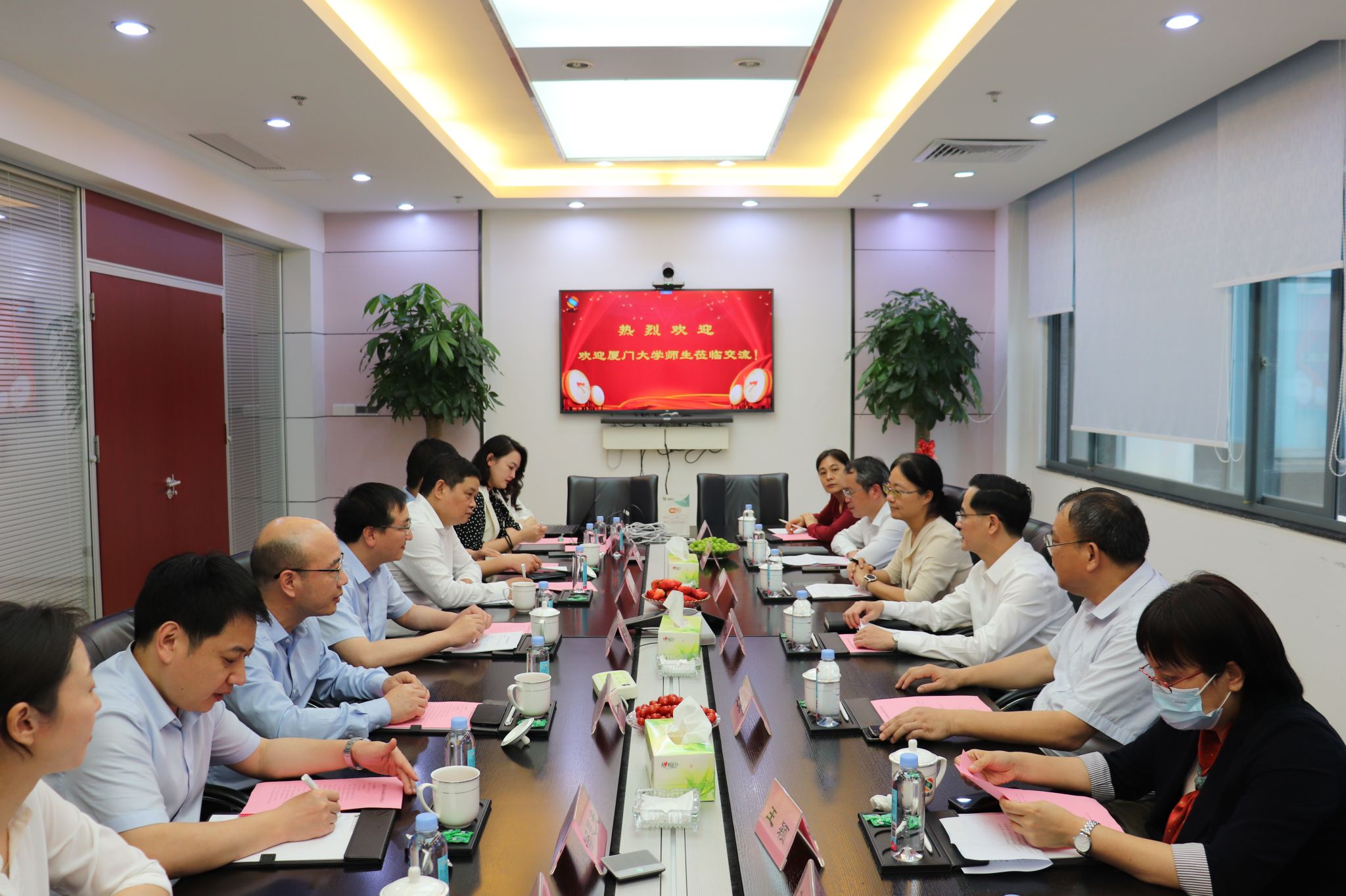 座谈伊始,双方共同观看了厦门大学航空航天学院和易联众信息技术股份有限公司的宣传片。吴梁斌对调研团一行的到来表示热烈欢迎,他表示,易联众集团作为民生领域数字化解决方案的先行者,坚持以数据链为基础,专注打造全方位的整体解决方案和产品与技术服务体系,致力于以数字化重塑民生健康新生态,欢迎更多厦门大学航空航天学院的学子加入易联众。