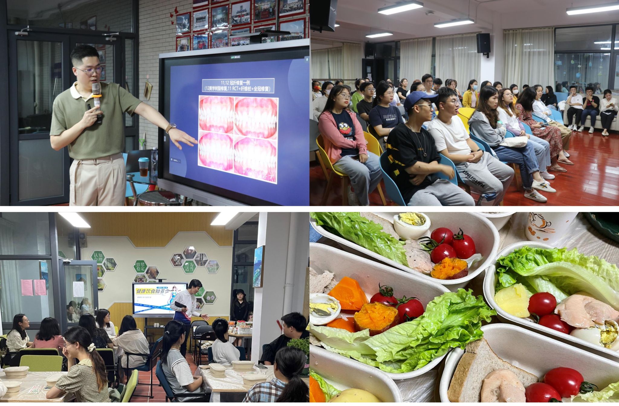 牛德利医生以“日常口腔保健与智齿”为主题,从牙菌斑的生成讲起,介绍了如何正确使用牙刷和牙线等护牙小常识,建议同学们减少碳酸饮料的摄入,并坚持刷牙、定期进行口腔检查。美食协会的成员通过健康知识竞答的方式科普正确的饮食知识,并引导同学们根据所获得的食材自制健康简餐。活动现场氛围热烈,同学们就健康相关问题展开了积极探讨,进一步了解和掌握了必备健康知识,助力健康校园建设。