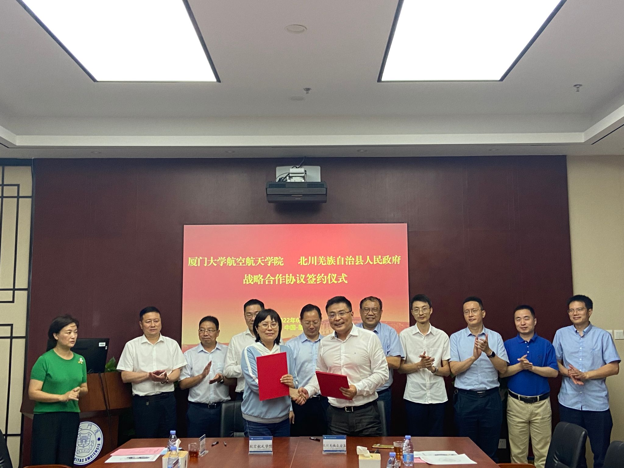 王康平首先对考察团一行来访表示热烈欢迎,随后双方分别观看航空航天学院与北川羌族自治县宣传视频,进一步增进了解。接着,双方战略合作签约仪式在热烈氛围中圆满完成。