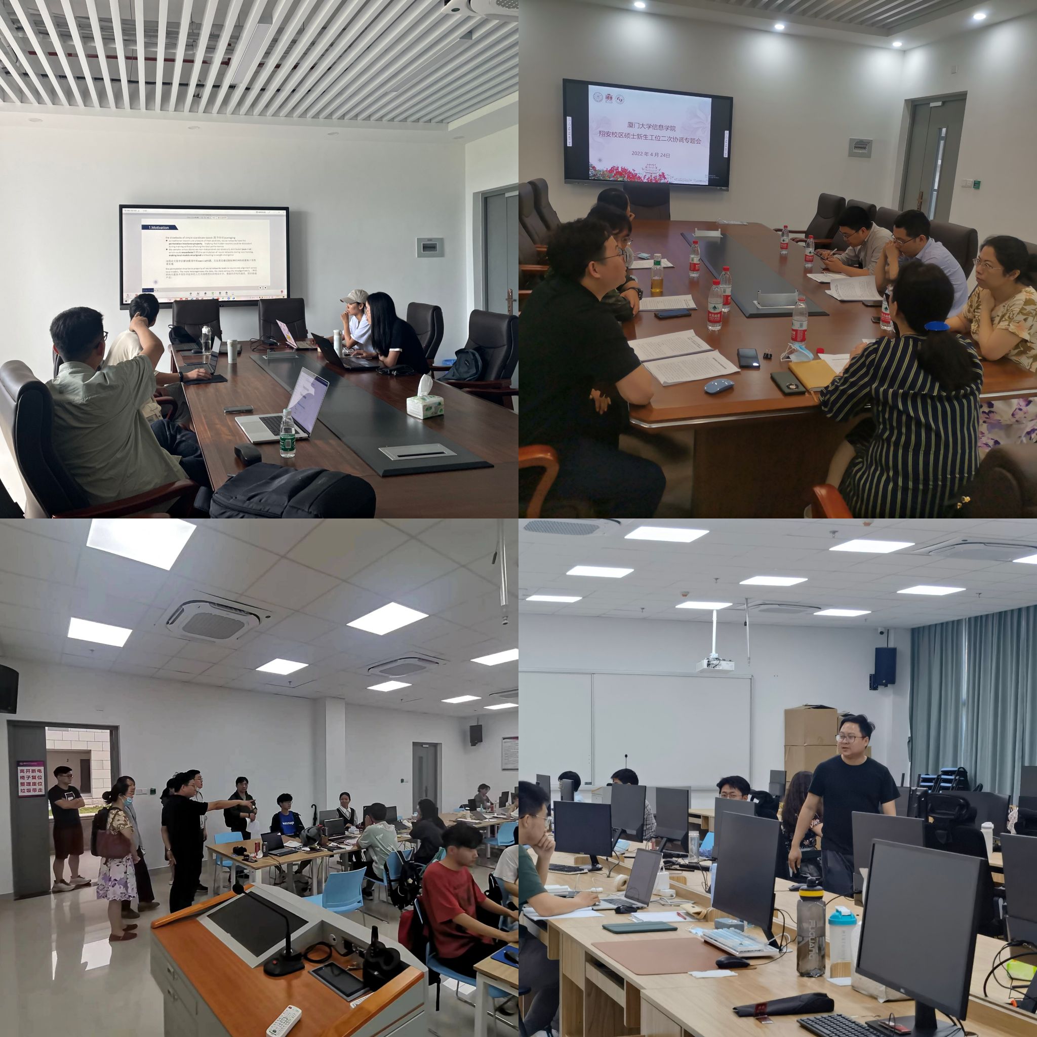 针对翔安校区研究生没有固定实验室的现实问题,学院党委多方协调,通过同学自愿申请,各系统筹管理的方式,在新院址4号楼安排300多个工位供同学们日常学习使用,并召开专题协调会,及时解决使用过程中遇到问题。通信2021级硕士生刘炫慧表示:“自从学院安排了实验室之后,就不用每天背着电脑跑图书馆和自习室了。在实验室能和大家一起学习、讨论,氛围比较好,总体来说,学习效率有了较大提升。”为解决研究生与导师两地分隔做科研的问题,安排海韵园与翔安校区往返专车,方便师生沟通的同时也解决学生两校区通勤问题。