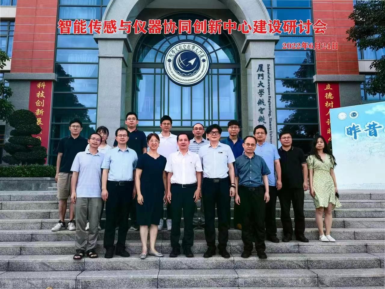 6月24日下午,福建省智能传感与仪器协同创新中心(以下简称“协同创新中心”)在牵头单位航空航天大楼顺利召开,协同创新中心各协同单位负责人和专家代表参加了研讨会,具体包括:厦门市特种设备检验检测院院长黄学斌、教授级高工伏喜斌,厦门市计量检定测试院院长蒋淑恋、高级工程师康品春,爱德森(厦门)电子有限公司董事长林俊明,西人马联合测控(泉州)科技有限公司总经理孔刚,中国科学院海西研究院泉州装备制造研究所研究员林晓刚,厦门大学航空航天学院副院长、协同创新中心负责人卿新林,仪器与电气系主任王奕首、副系主任郑高峰以及协同创新中心其他成员。