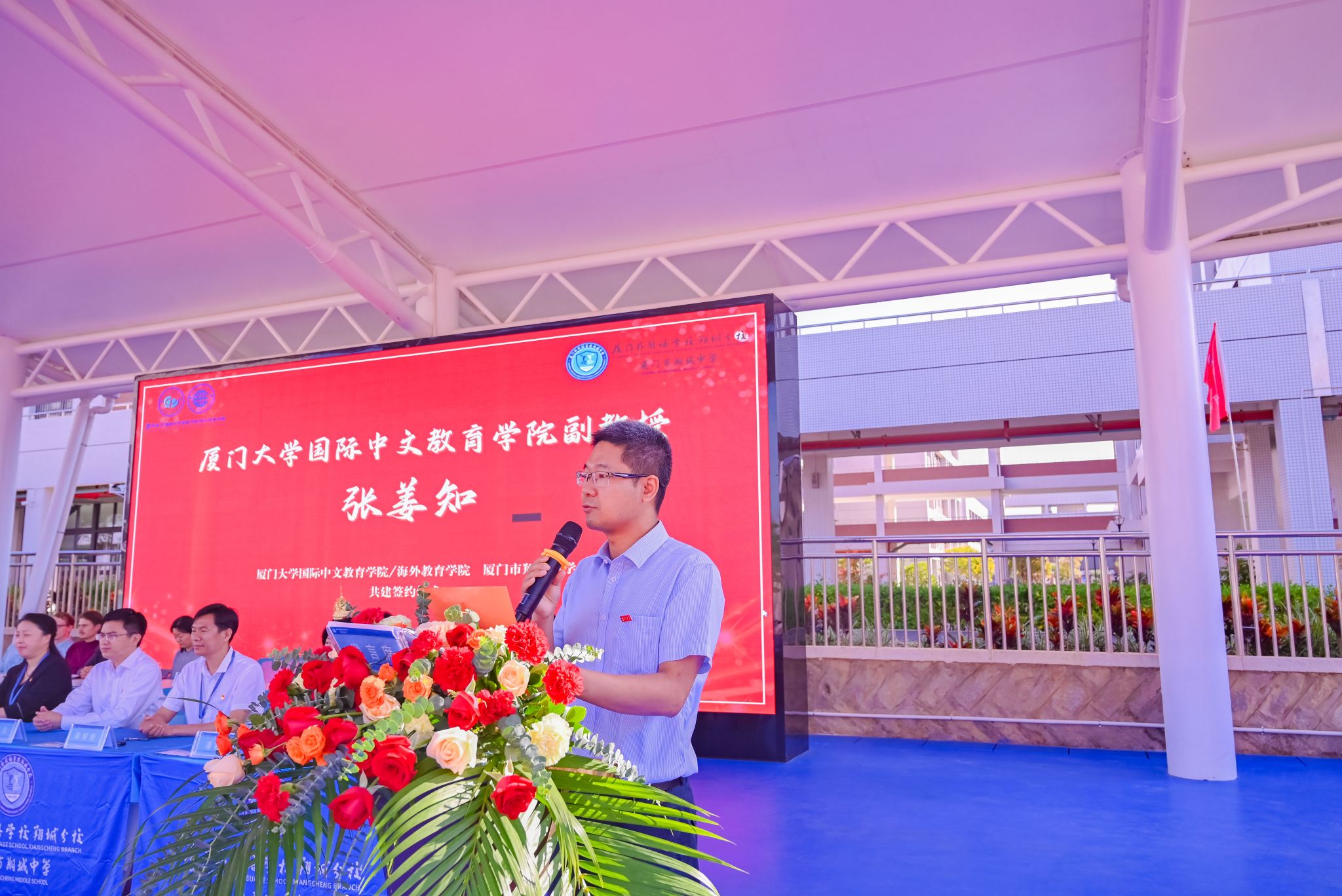 张姜知副教授作为厦门大学国际中文教育学院教师代表在发言中表示,将以此校院共建为契机,秉持“以党建为引领,推进大学教育与中学教育紧密衔接,将大学优质教育资源进一步向中学延伸、辐射”的合作目的,充分发挥厦门大学和国际中文教育学院的优势,肩负起“大手拉小手”的责任。