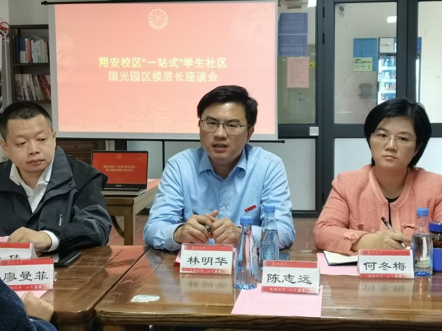 为了更好地了解学生需求,拓展国光2“一站式”学生社区的职能,11月30日上午,翔安校区国光园区“一站式”学生社区召开师生座谈会。受国光园区兼职辅导员、校党委学生工作部(处)李峰部(处)长委托,国际中文教育学院/海外教育学院党委副书记林明华主持会议,国光园区兼职辅导员、国际中文教育学院/海外教育学院办公室主任洪伟,国光园区兼职辅导员、厦门大学中外语言交流合作中心副主任何冬梅,国际中文教育学院/海外教育学院团委书记陈艺新、翔安校区公寓办秘书杨凯旭、公寓办辅导员王田源、柯达伟、文恒钰以及十余名来自不同学院的学生楼层长、中外籍学生代表参加座谈。