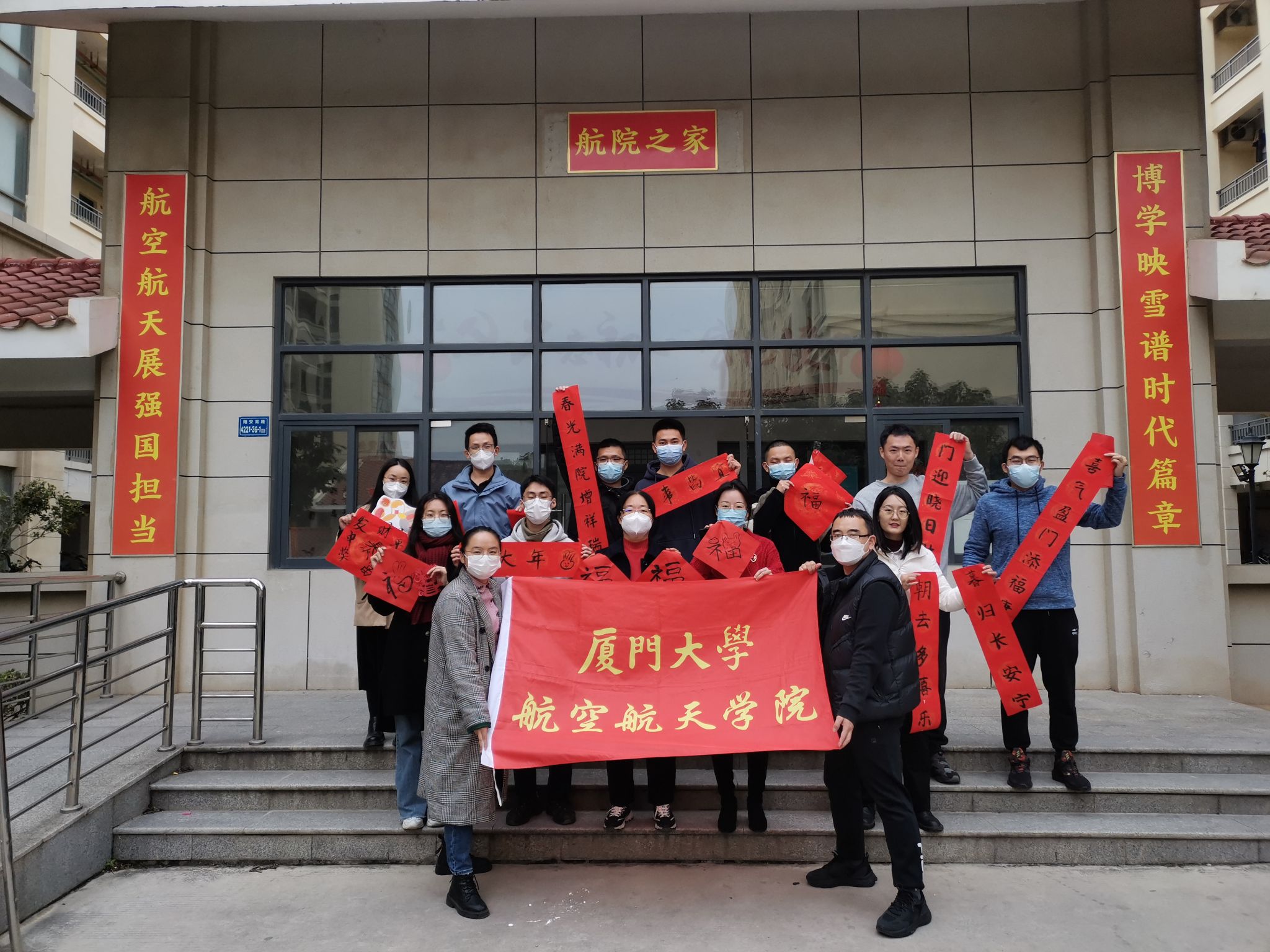 辞旧迎新,瑞兔送福。1月16日,在癸卯兔年即将到来之际,航空航天学院在翔安校区映雪园区、博学园区的学生公寓和“一站式”空间举办“除尘布新”迎新春暨留校学生慰问活动。航空航天学院党委副书记林蔚,团委书记沈鑫,一站式兼职辅导员欧阳智贤,辅导员董芬、林圳钦等老师到场,与留校学生们一起写春联、贴福字、剪窗花,并且为他们带来新春的祝福和节日的慰问。