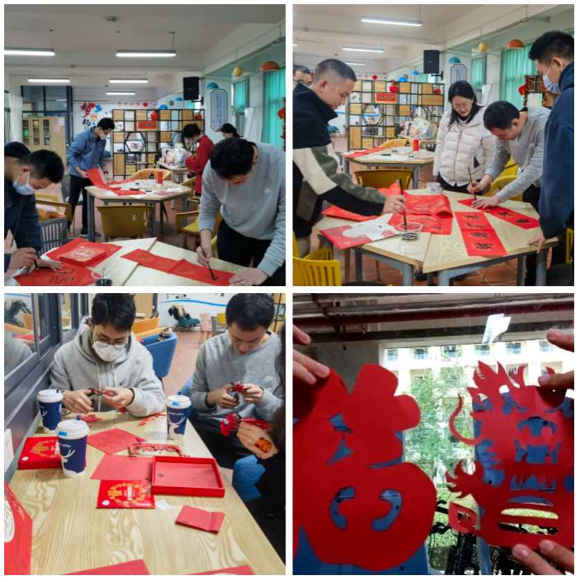 挥毫泼墨迎新春,总把新桃换旧符。贴春联、剪窗花是过年不可缺少的传统习俗,红纸黑字、精巧构思,寄托了老百姓们迎新纳福的美好愿景。在这一年一度的“书法大赛”中,师生们挥毫泼墨,将对新春的祝福寄予笔下。在大家的运笔走势间一幅幅充满喜庆气息、蕴含浓浓年味的对联跃然纸上。而在另一边,随着剪刀的一张一合、辗转移动,一幅幅漂亮生动的剪纸在同学们的手中诞生。新年春联和窗花一贴,年味马上就来了。