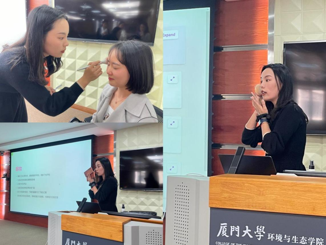 在“与美同行,梦启芳华”活动中,一场以“发现更美的自己”为主题的大学生形象课堂在学院A239拉开帷幕。我院生态学博士研究生董事作为主讲人,为同学们分享护肤淡妆、面试妆容、礼仪形象小技巧和变美小思路。现场欢声笑语,掌声不断。