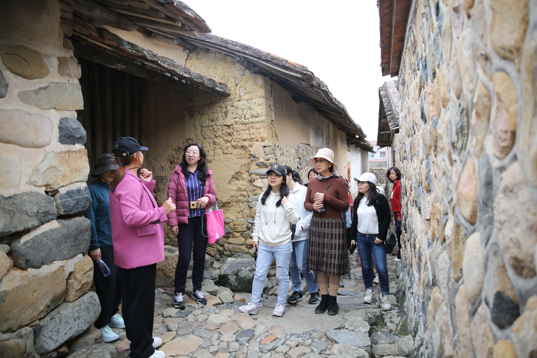 下午,大家来到本次春游的第二站——古山重村。山重村享有“千年古村落,生态古山重,山水花中游”之美誉,其1300多年的历史,造就了这里独特的建筑风格、自然景观与风俗文化。千年古樟,百年古民居,宋代石佛塔,幽长溪道,灵山碧水,原生态乡村民俗,无一不令各位老师心旷神怡,流连忘返。