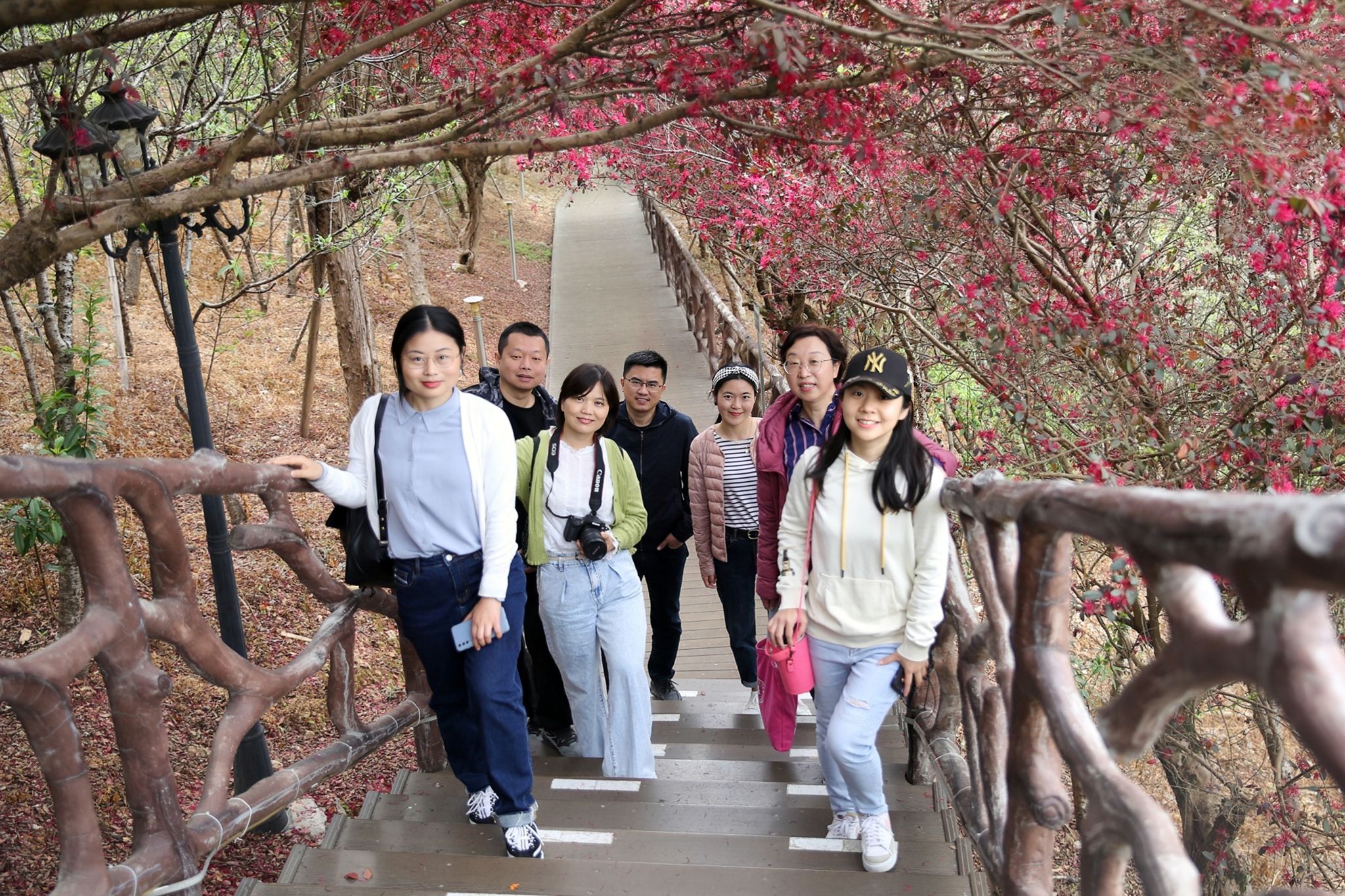 活动当天,暖阳煦煦、微风缕缕,伴随着一路的欢声笑语,大家来到了此次活动的第一站——漳州长泰“十里蓝山”风景区。景区内,春意盎然、生机勃勃。玛琪雅朵花海百花齐放,油菜花、虞美人、碧桃、黄花风铃木、洋紫荆、含笑等争奇斗艳,花香四溢。