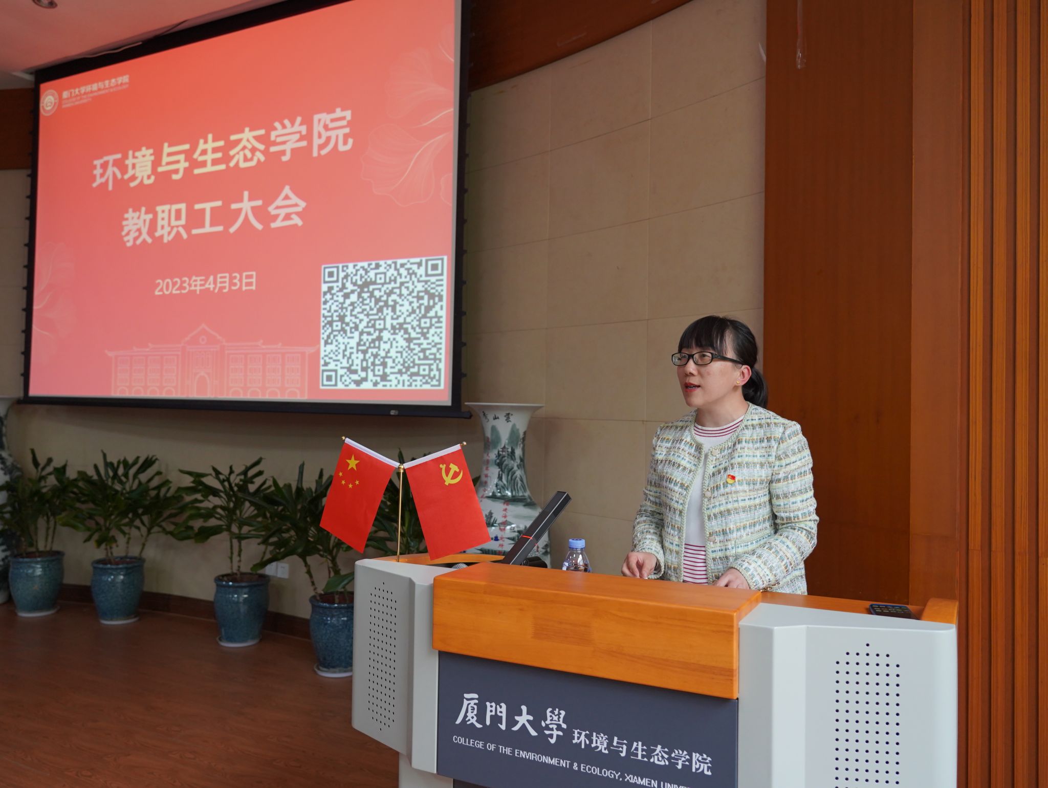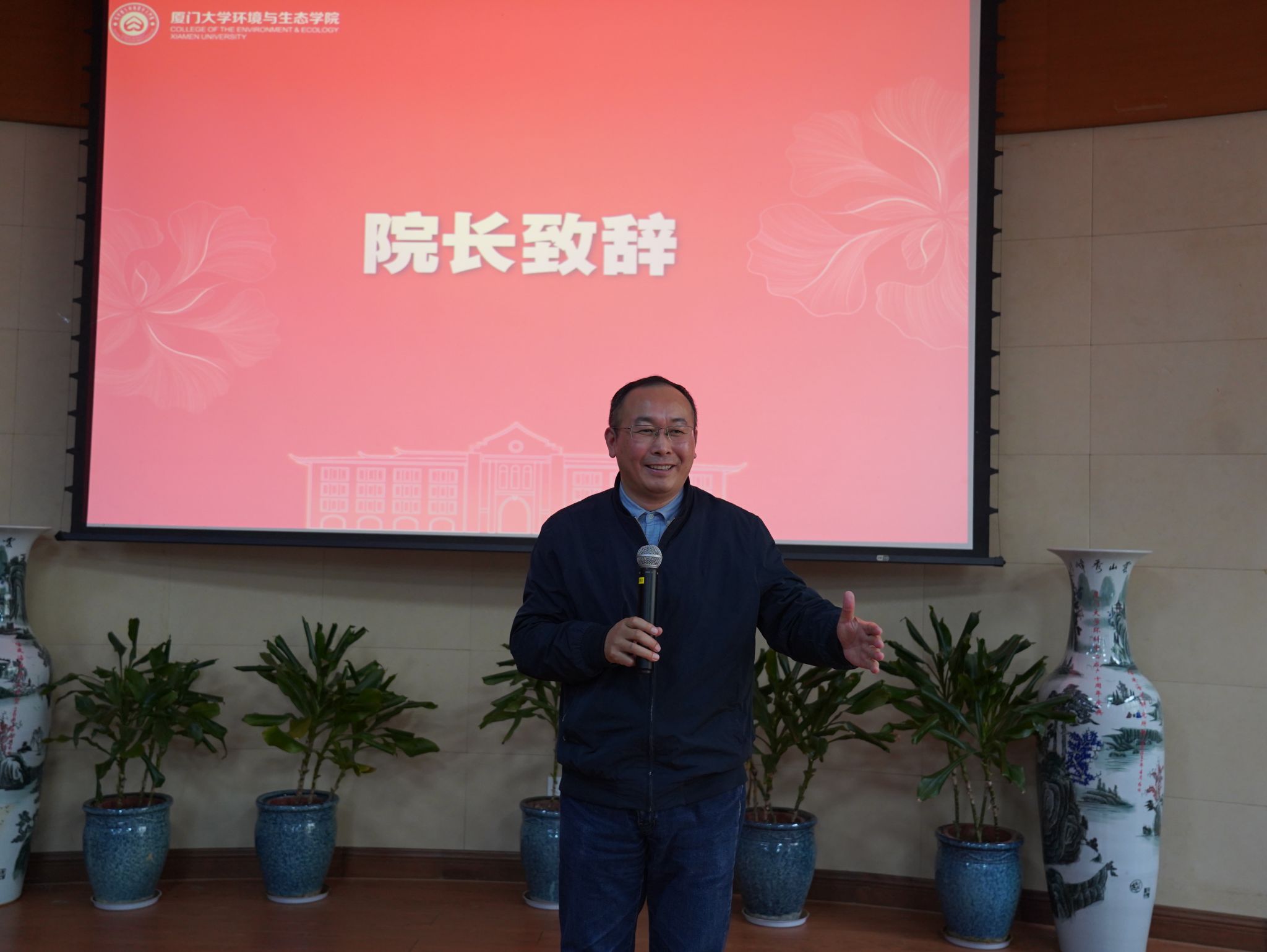 4月3日下午,在金泉楼B103报告厅,环境与生态学院全体教职工欢聚一堂,为今年退休的三位教师李振基、欧阳通、熊小京举行了庄重又温暖的荣休仪式。仪式由学院党委副书记刘莉颖主持。