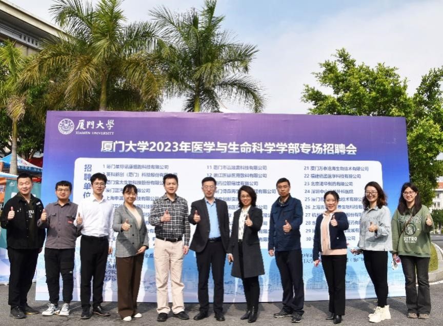 4月7日下午,厦门大学2023年医学与生命科学学部专场招聘会于厦门大学翔安校区曾宪梓楼前广场举办。本次招聘会由厦门大学学生就业创业指导中心、公共卫生学院、生命科学学院、医学院、药学院共同主办,30余家用人单位参加了招聘会。