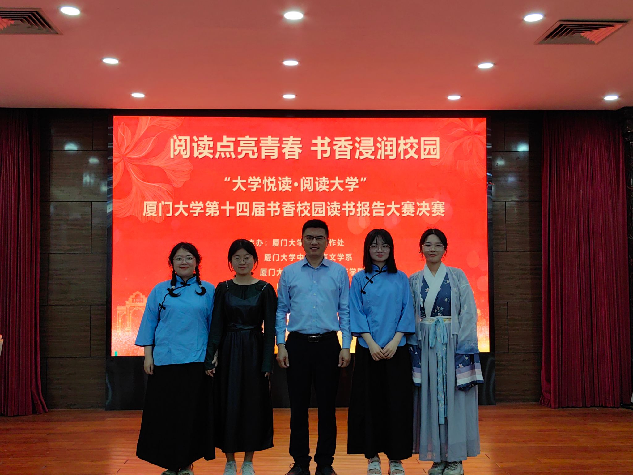 为进一步营造爱读书、读好书、善读书的良好氛围,提高学生人文素养,丰富学生精神文化生活,着力建设“书香校园”,4月21日晚,厦门大学第十四届书香校园读书报告大赛决赛在联兴楼多功能厅落幕。共有12支来自各个学院的队伍进入决赛,经过激烈角逐,我院2022级研究生段若琳获一等奖,王笑、万欣林团队获三等奖,王梦竹获优秀奖,学院荣获优秀组织奖。
