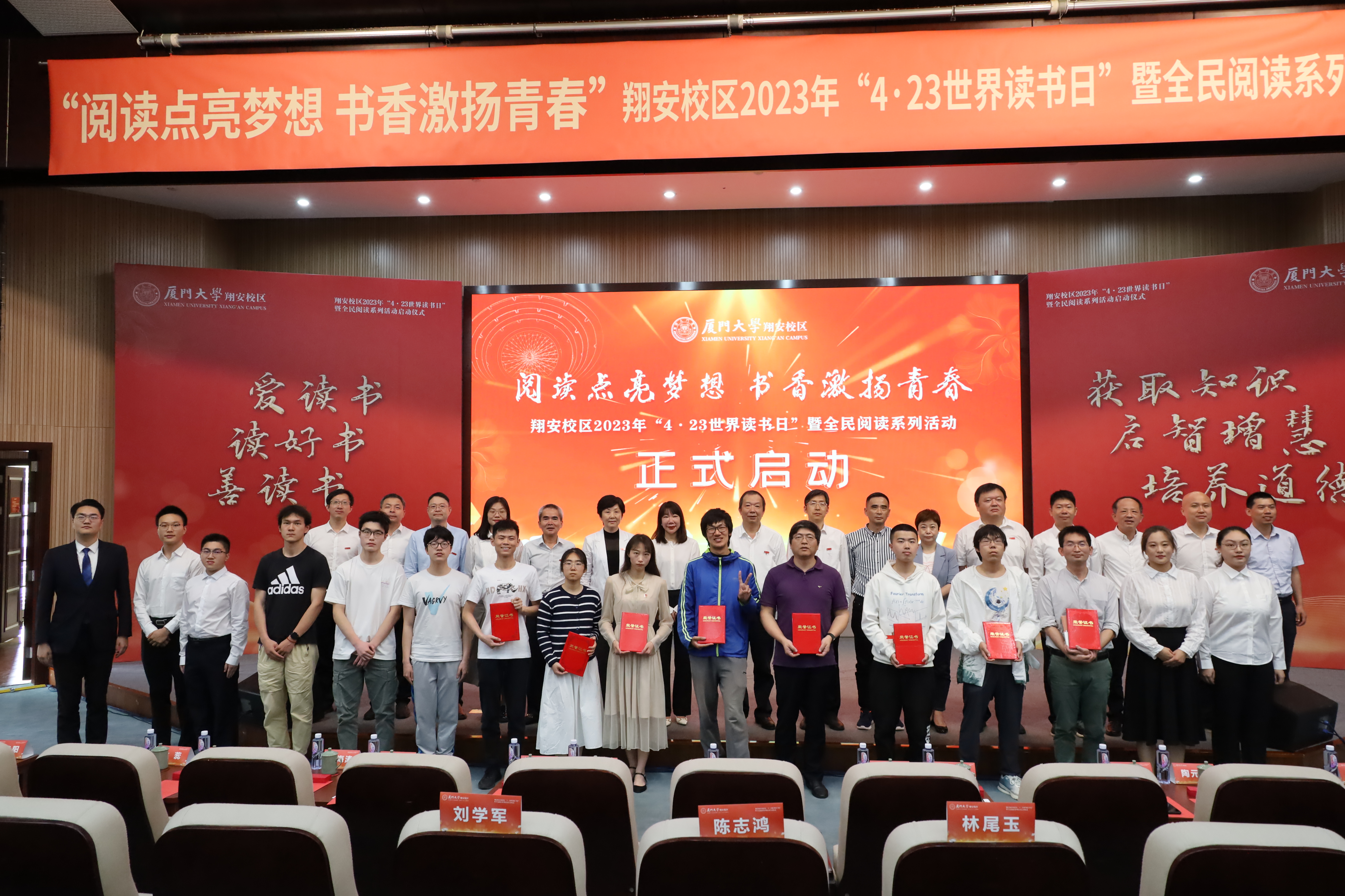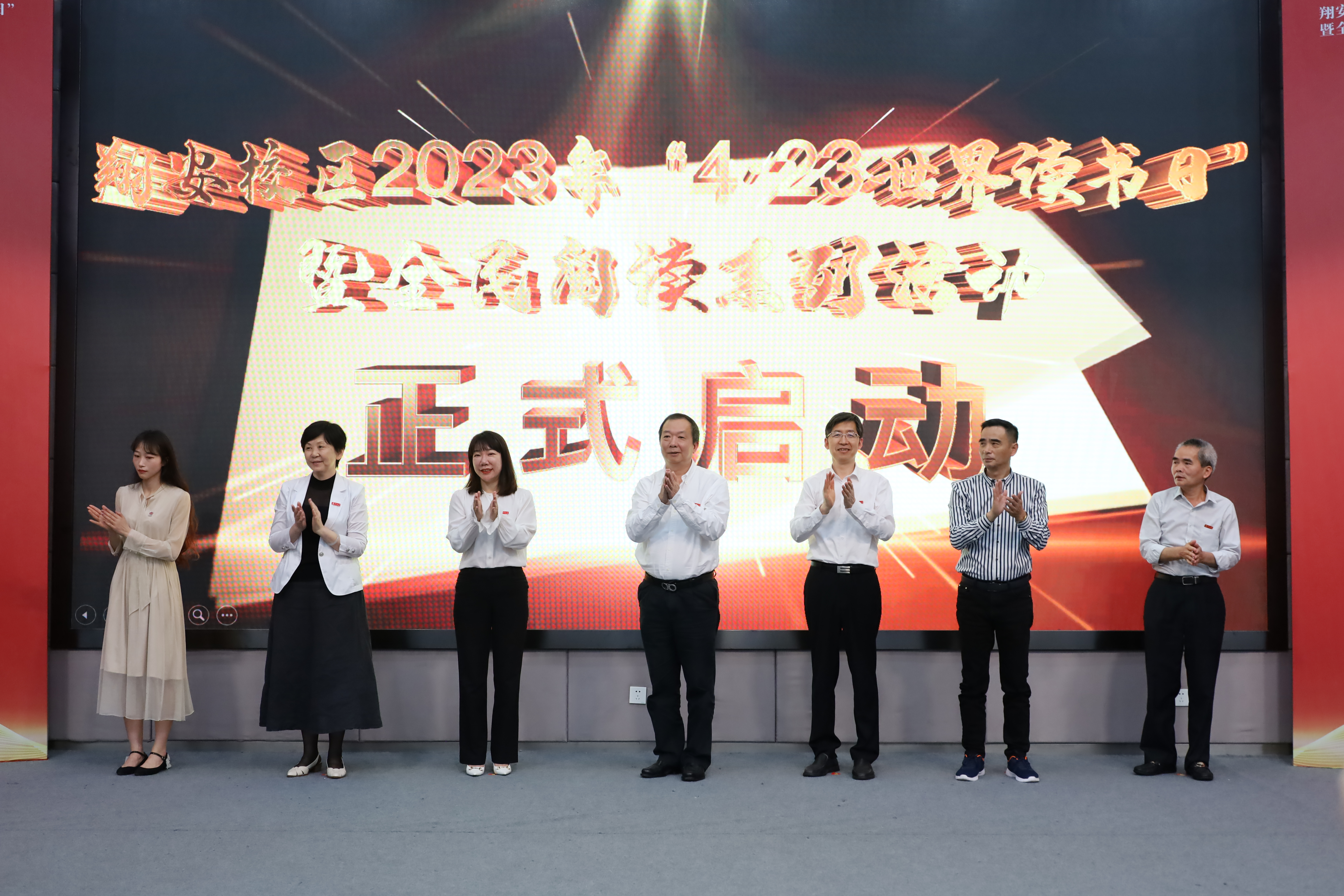 活动最后,陈光、钞晓鸿、洪秋霞、陈晓滨、楼红英、邱仲潘、刘蓉蓉共同启动翔安校区2023年全民阅读系列活动。全民阅读是建设学习型社会、学习型大国的重要措施,对建设文化强国有着重要意义。随着全民阅读在翔安校区的深入开展,将进一步激发广大师生立志为中华民族伟大复兴而读书的责任感与使命感。