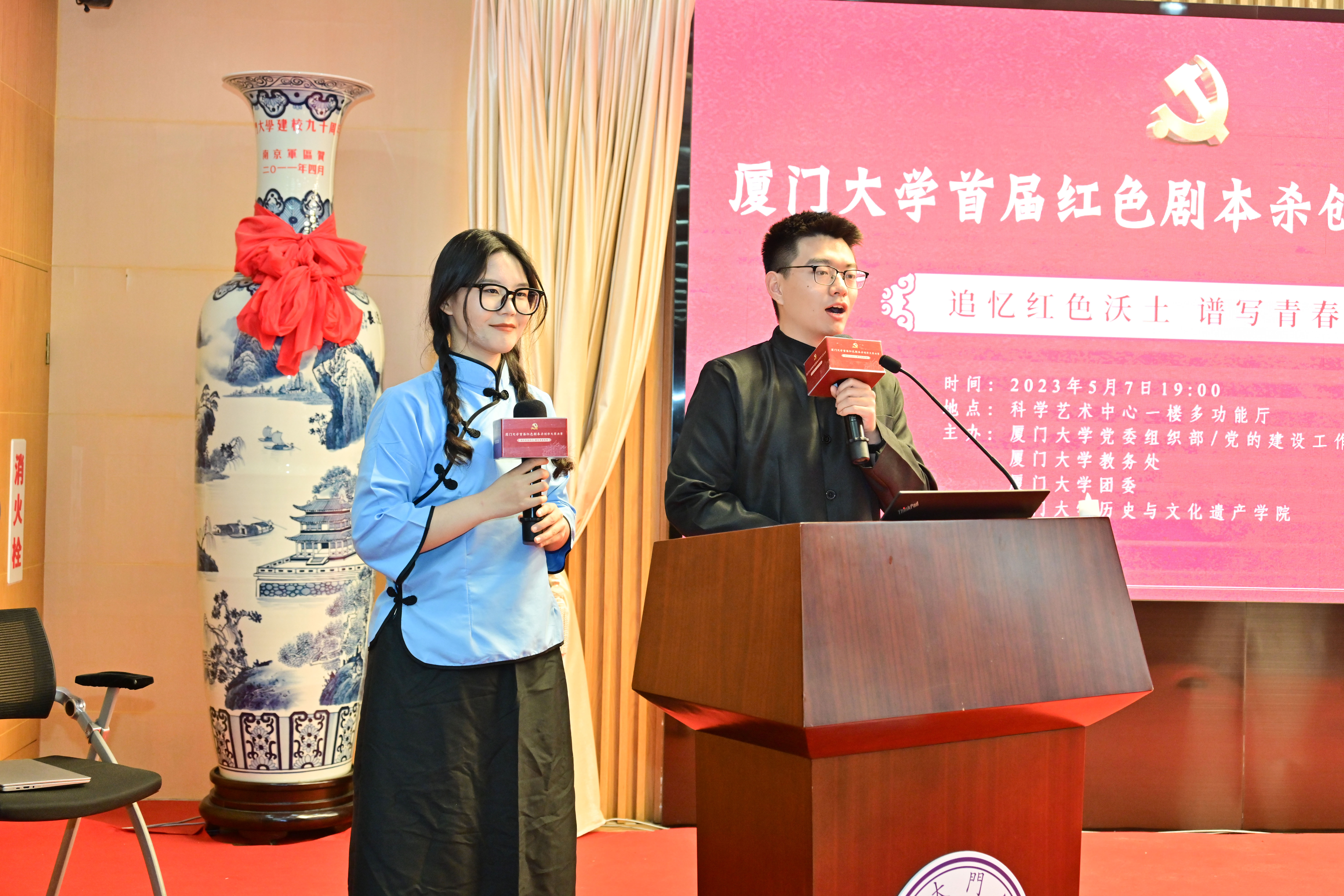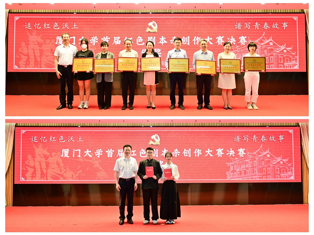 为深入开展学习贯彻习近平新时代中国特色社会主义思想主题教育,创新思政教育形式,5月7日晚,由厦门大学党委组织部/党的建设工作办公室、教务处、校团委主办的厦门大学首届红色剧本杀创作大赛决赛在科艺中心一楼多功能厅举办。比赛自今年1月下旬至5月上旬,来自全校50余组选手报名参赛,最终12组选手进入决赛。由我院2022级硕士研究生孙昊泽、段若琳创作的《四方同安》在决赛中斩获一等奖,学院获优秀组织奖。