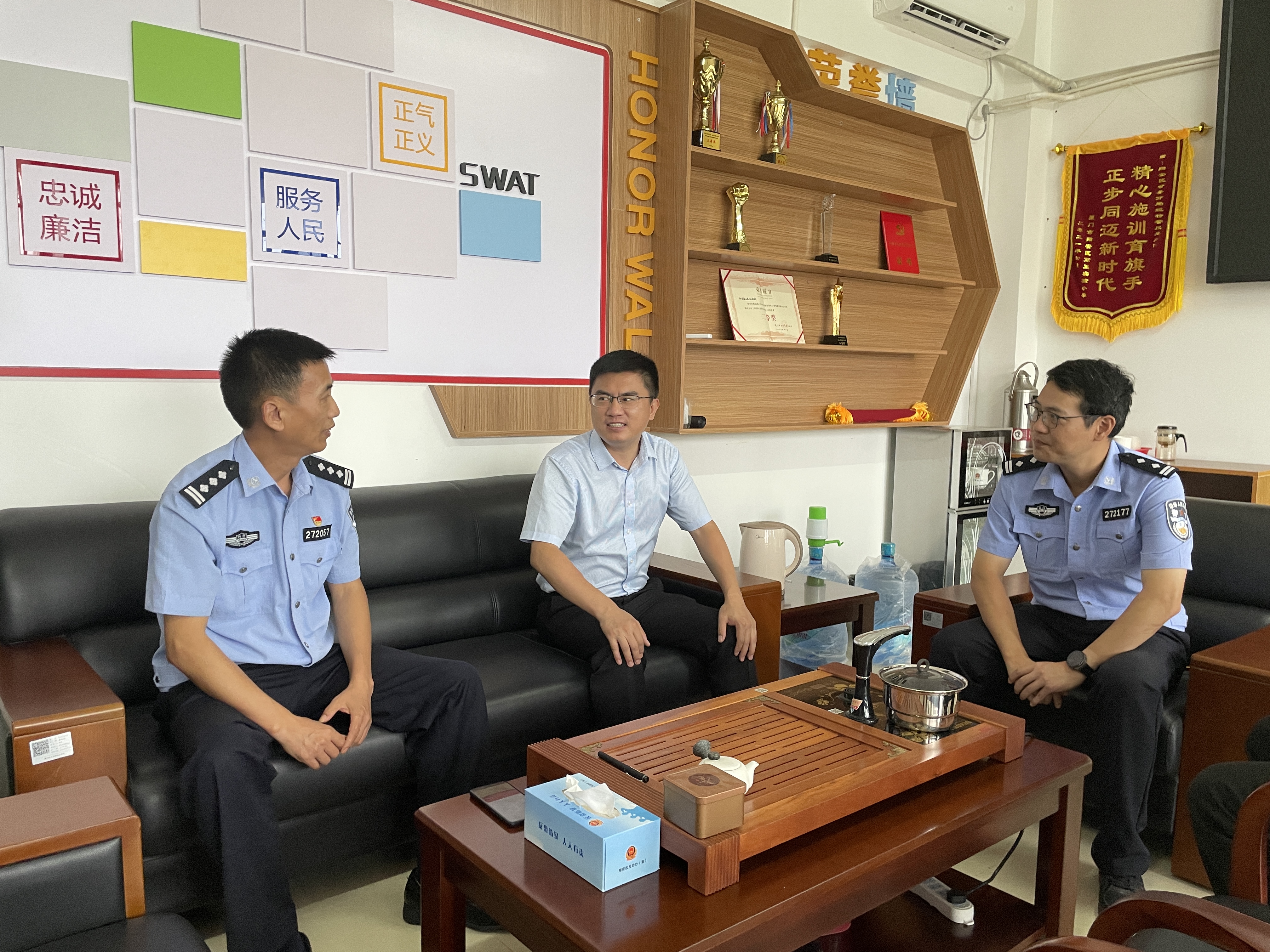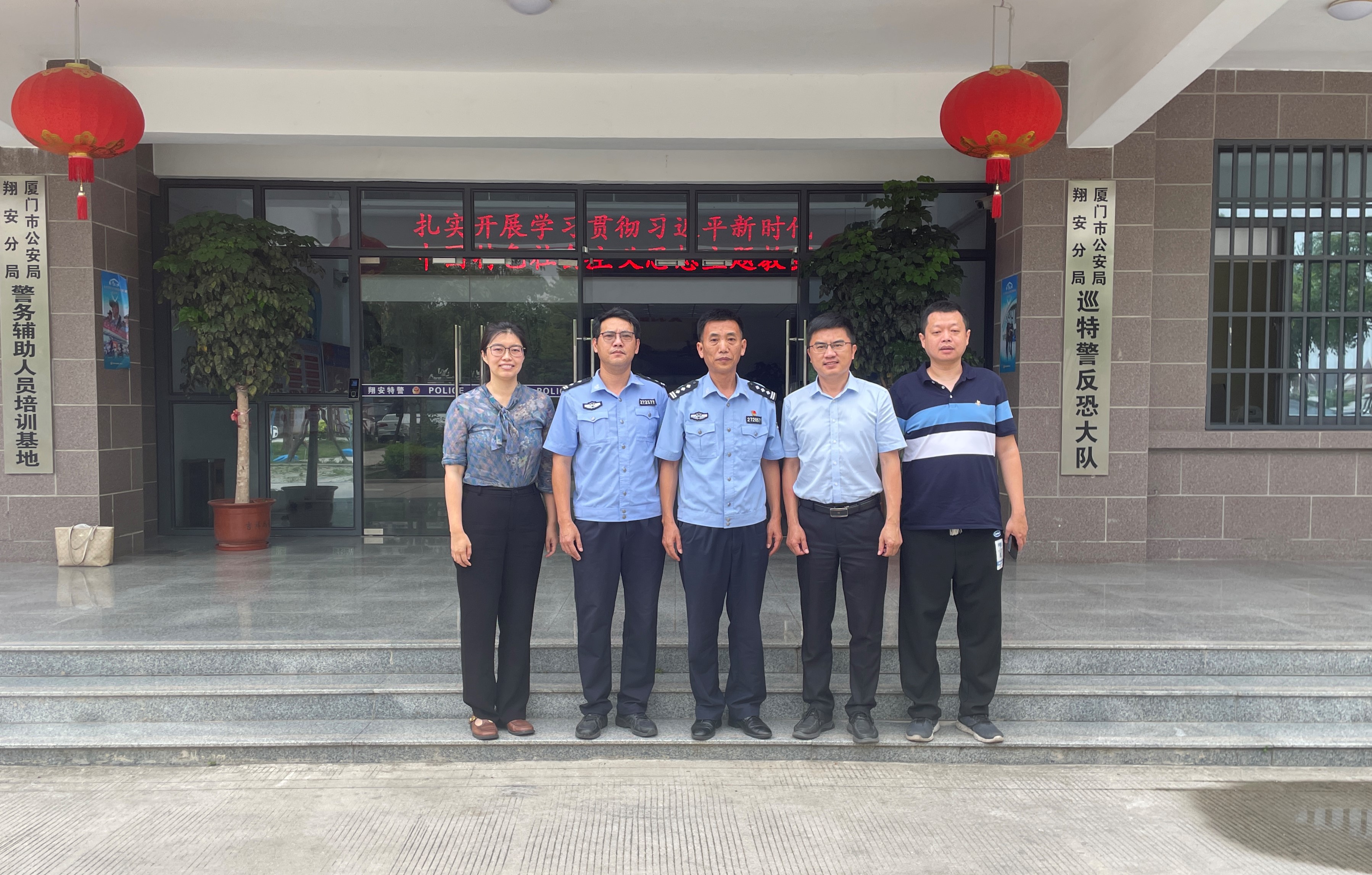 为进一步共享资源、共同打造警校合作新生态,6月14日上午,厦门大学国际中文教育学院/海外教育学院党委副书记林明华、办公室主任洪伟、中外语言合作交流中心副主任林琳一行走访厦门市公安局翔安分局巡特警反恐大队,与厦门市公安局翔安分局巡特警反恐大队队长欧阳升辉、副队长李永健进行座谈交流。