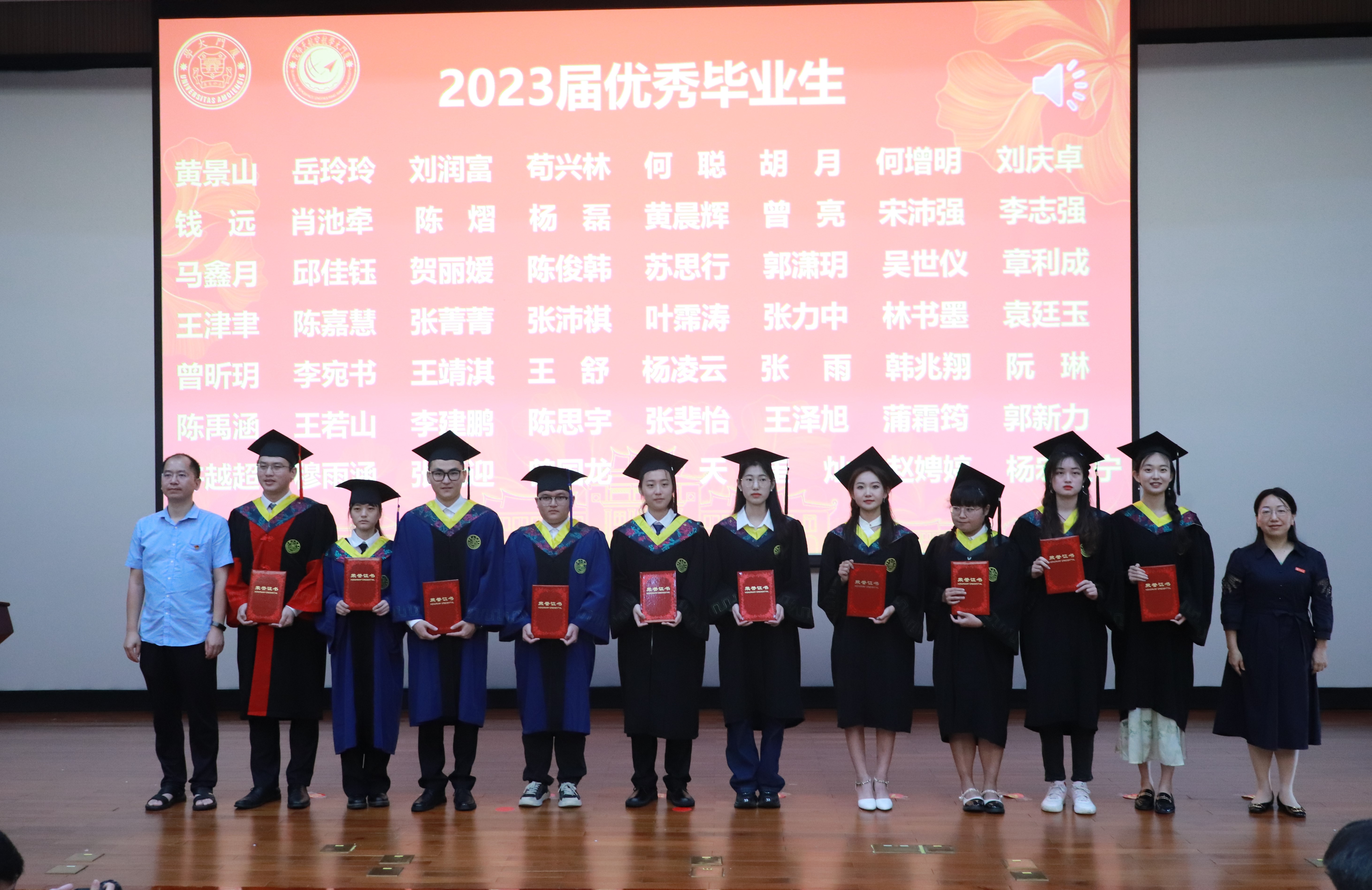 林蔚宣读学院2023届优秀毕业生表彰决定,廖志丹、尤延铖为优秀毕业生颁授荣誉证书。