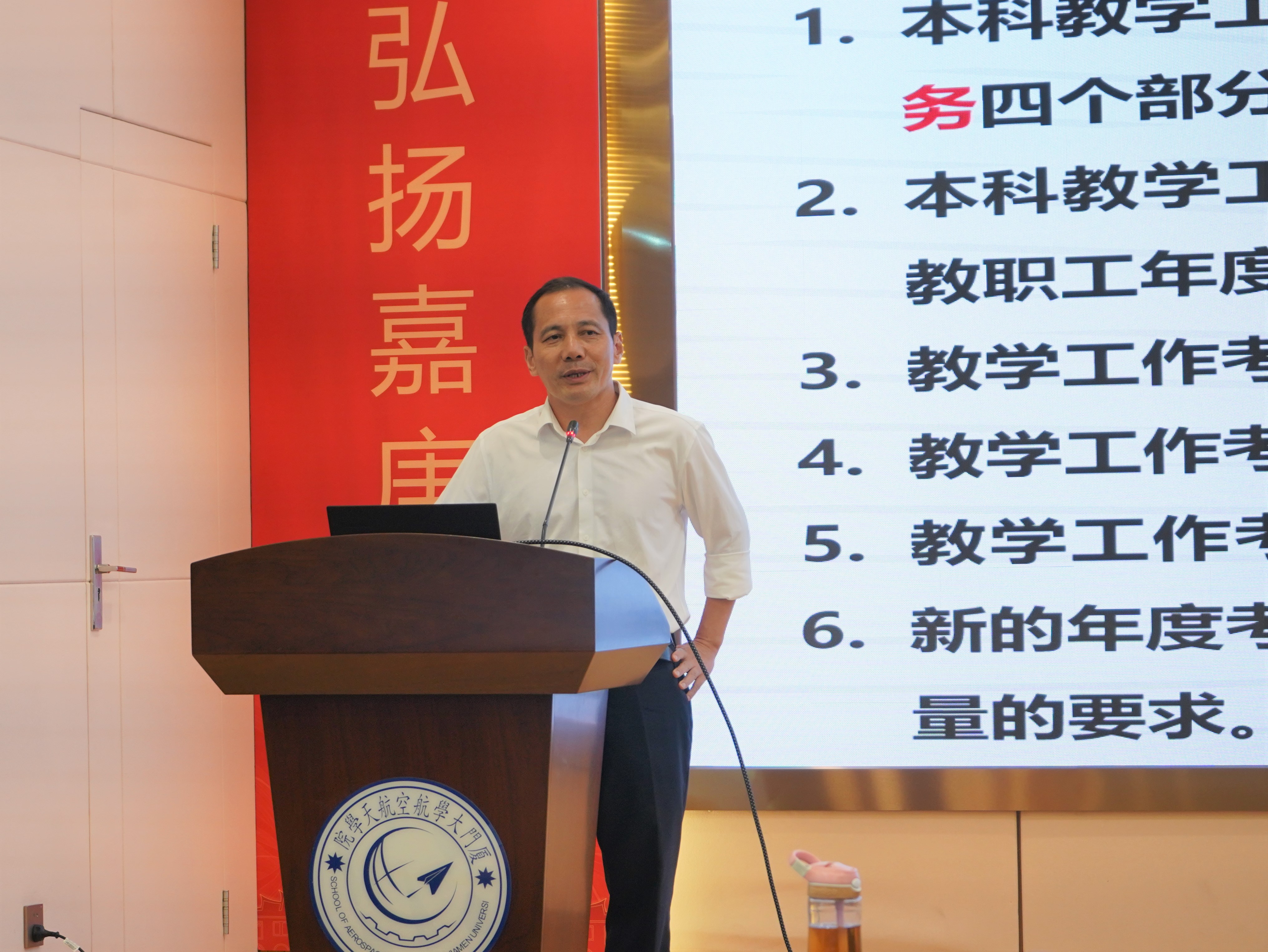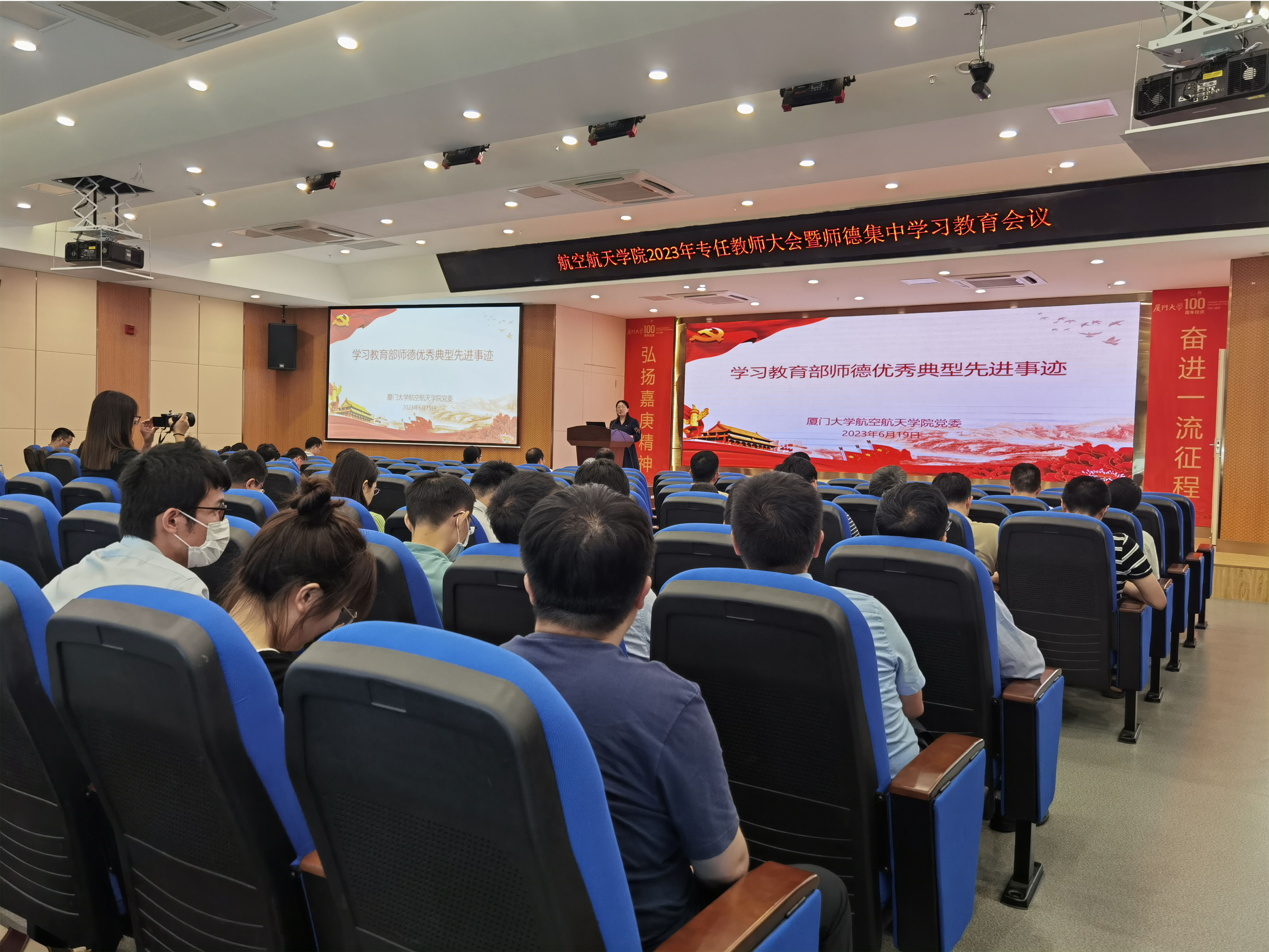 6月19日下午,航空航天学院2023年专任教师大会暨师德集中学习教育会议在学院报告厅顺利召开。本次会议表决通过航空航天学院优秀人才评价标准,并围绕本科教学考核、公共服务考核、科研团队改革、师德师风等工作进行了介绍和工作部署。学院党委书记廖志丹、常务副院长尤延铖、副院长卿新林、党委副书记王寒及全院专任教师参加会议,会议由党委副书记林蔚主持。